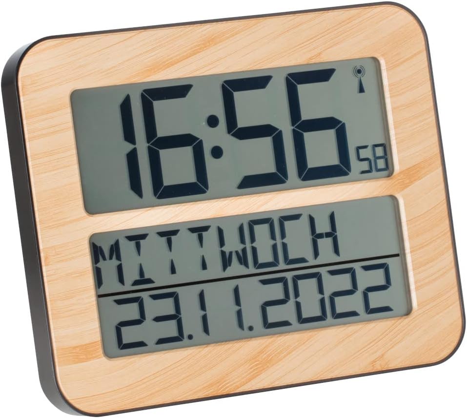 Immer die perfekte Zeit im Blick! Diese stylische Funk-Wanduhr von TFA Dostmann zeigt dir nicht nur die genaue Uhrzeit, sondern auch Temperatur, Datum, Kalenderwoche und den ausgeschriebenen Wochentag in 7 Sprachen an. Durch den DCF-77-Empfang stellt sich die Uhr automatisch auf die richtige Zeit ein - keine lästige Umstellung mehr zwischen Sommer- und Winterzeit! Mit zwei Weckalarmen inklusive Schlummerfunktion startest du garantiert pünktlich in den Tag. Die große, übersichtliche Anzeige ist auch aus der Entfernung gut lesbar. Perfekt für Küche, Wohnzimmer, Büro oder Schlafzimmer. Im schicken Weiß gehalten passt die Uhr zu jedem Einrichtungsstil. Mit ausklappbarem Ständer kannst du sie sowohl hängen als auch stellen. Inklusive 2 AAA-Batterien - einfach einlegen und sofort nutzen. Lautlos, praktisch und absolut zuverlässig. Ein echter Alltagshelfer für mehr Organisation in deinem Zuhause!