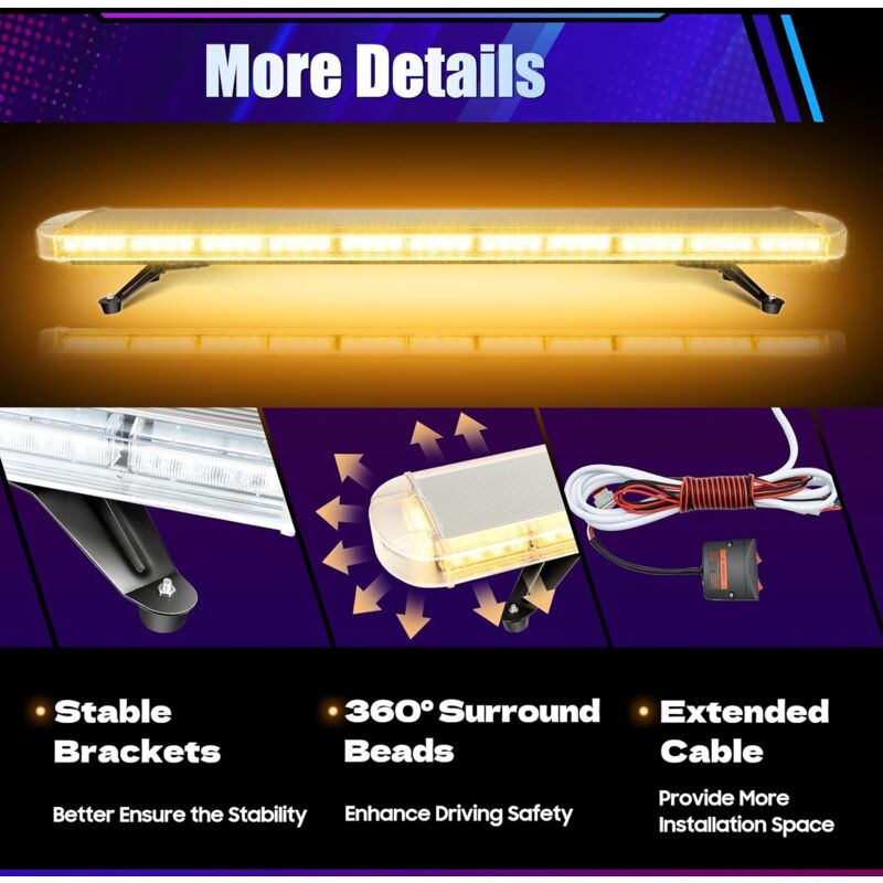 Justech 72LED Warnleuchte – 12/24V, Magnetfuß, 6 Blitzmodi, E57 Zugelassen