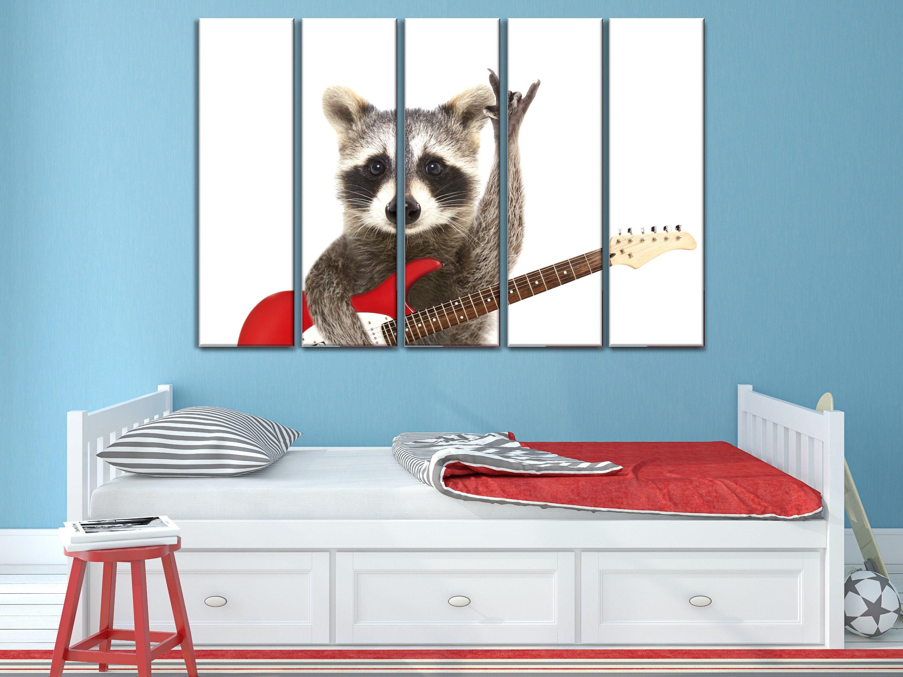 Wandbild Leinwand Waschbär Mit Gitarre - Deko Für Wohnzimmer & Mehr