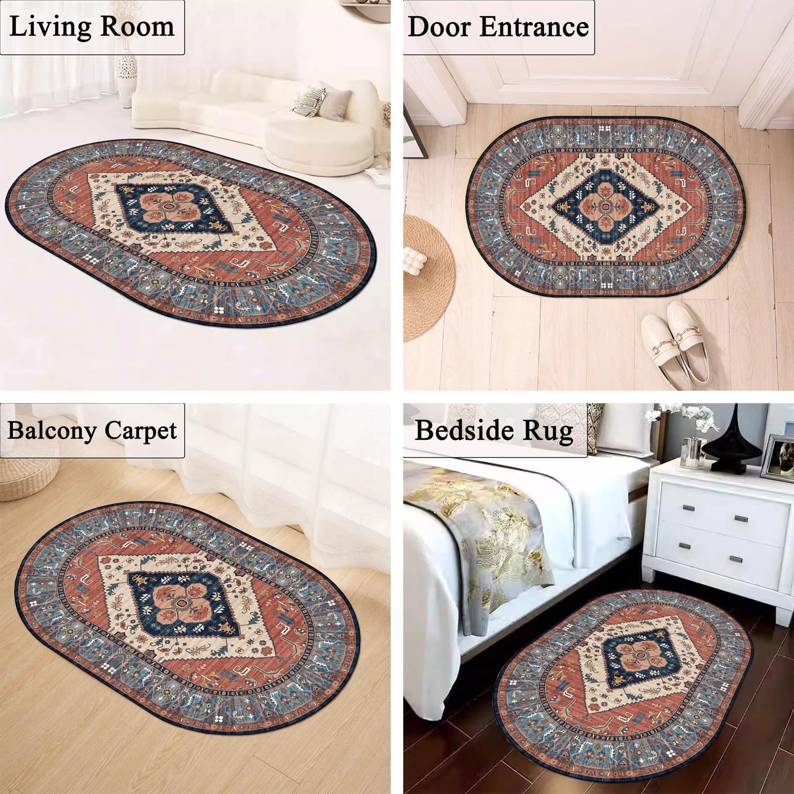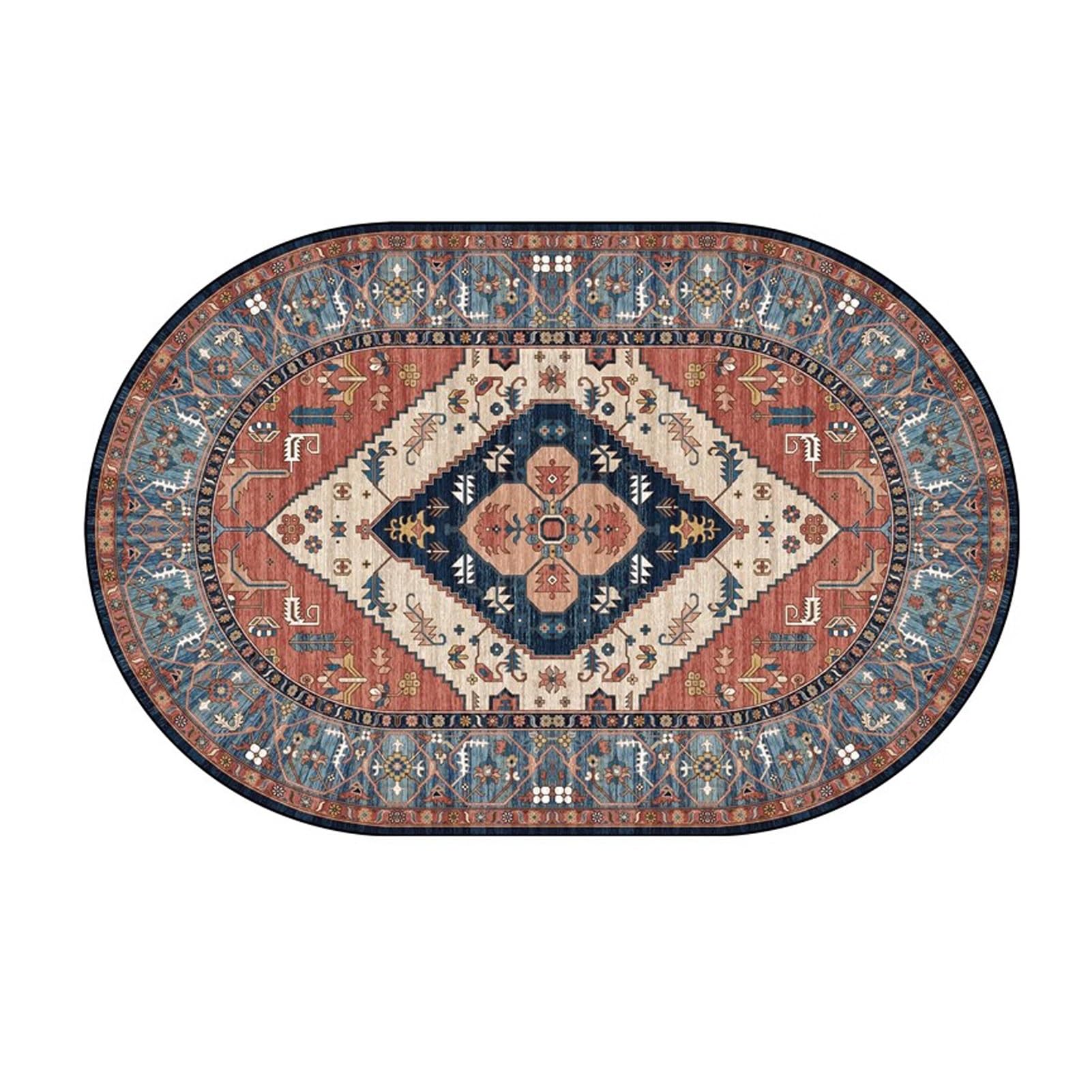 Vintage Teppich Waschbar - Perfekt Für Wohnzimmer, Schlafzimmer & Balkon | 100x160cm Oval