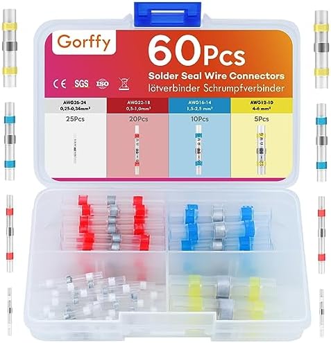 Ideal für alle Bastler und Profis: Dieses 60-teilige Set enthält Quetschverbinder in verschiedenen Farben und Größen (BHT 0,5–5,5 mm²) inklusive Schrumpfschlauch für eine sichere, wasserdichte Verbindung. Perfekt für Auto, Boot, Marine oder Haushaltsprojekte! Die Verbinder sind einfach mit einer Heißluftpistole zu verschließen (ca. 400 °C) und schützen so vor Kurzschlüssen, Feuchtigkeit und Korrosion. Mit dem Sortiment aus blauen, roten, gelben und transparent-weißen Verbindern kannst du Kabel einfach nach Stromstärke unterscheiden. Robuste Materialien und einfache Handhabung machen dieses Set zu einer zuverlässigen Lösung für jede Elektroinstallation.