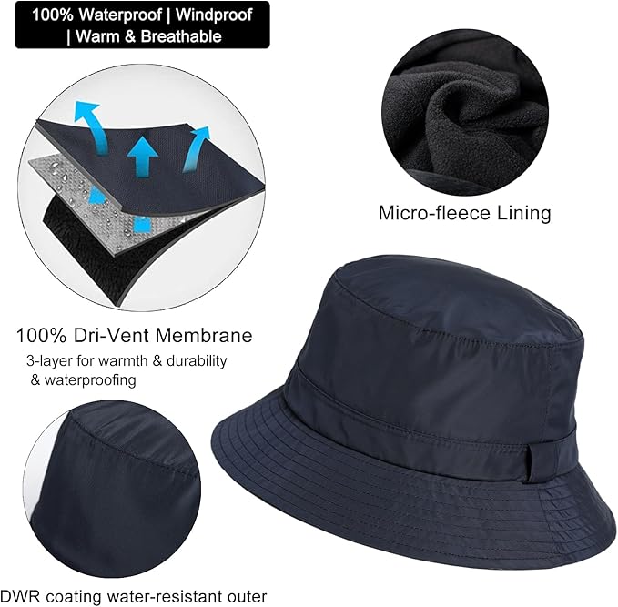 Dem Winter und Regen trotzen mit diesem praktischen Hut von Comhats! Der wasserdichte Damenhut hat innen weiches Fleece-Futter - da frieren deine Ohren garantiert nicht mehr! Die breite Krempe hält Regen und Sonne von deinem Gesicht fern, super praktisch für Brillenträger. Und das Beste: Der Hut ist verstellbar (Größe M für 56-58cm, L für 58-60cm) und passt damit fast jedem Kopf. Wenn's mal nicht gebraucht wird, einfach zusammenknüllen und in die Tasche stecken - er bekommt keine komischen Falten! Perfekt für Hundespaziergänge, Wanderungen oder einfach nur für den Weg zur Arbeit bei miesem Wetter. In verschiedenen Farben erhältlich, damit du immer passend ausgestattet bist. Ein echter Allrounder für die kalte Jahreszeit!