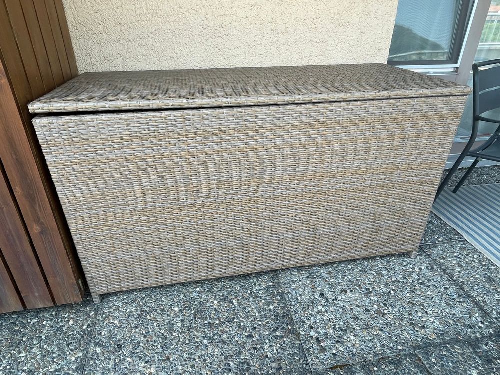 Deine Gartenkissen verdienen den besten Schutz! Die DEGAMO Kissenbox BREMEN ist absolut wasserdicht - dank integrierter Gummidichtung im Deckel. Aus robustem, verzinktem Stahl mit Pulverbeschichtung in anthrazit (RAL 7016). Riesen 200 Liter Fassungsvermögen - Maße 115x50x58cm. Abschließbar mit 2 Schlüsseln - deine Polster sind sicher verstaut. Verstellbare Füße für perfekten Stand auch auf unebenen Böden. Rostfreie Edelstahl-Beschläge für extreme Langlebigkeit. Sieht nicht nur gut aus, sondern hält auch jahrelang durch. Perfekt für Kissen, Decken, Polster oder Gartenzubehör. Endlich Ordnung auf der Terrasse! Deine Gartenmöbel bleiben schön und du hast alles griffbereit. Investition, die sich lohnt - deine Gartenutensilien bleiben trocken und geschützt!