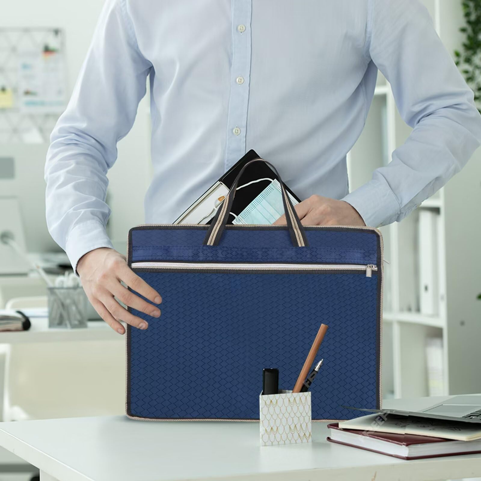 Suchst du eine stylische und praktische Aktentasche? Diese Oxford-Tasche ist perfekt für Office, Meetings oder Reisen! In dunkelblau sieht sie super professionell aus - aber nicht langweilig! Maße: 40x8x34 cm - perfekt für A4-Ordner, Laptops und alle wichtigen Dokumente. Aus wasserdichtem Oxford-Stoff - deine Unterlagen bleiben auch bei Regen trocken! Das doppellagige Design gibt extra Stabilität. Besonders praktisch: Hauptfach mit Reißverschluss plus externe Seitentasche für Handy, Schlüssel oder Tickets. Der ergonomische PVC-Griff liegt super in der Hand - auch bei langem Tragen bequem! Perfekt für Geschäftsleute, Studenten oder einfach als tägliche Begleiterin. Sieht aus wie teure Designer-Taschen, kostet aber nur einen Bruchteil! Einfach einpacken und los - organisiert und stylisch unterwegs!