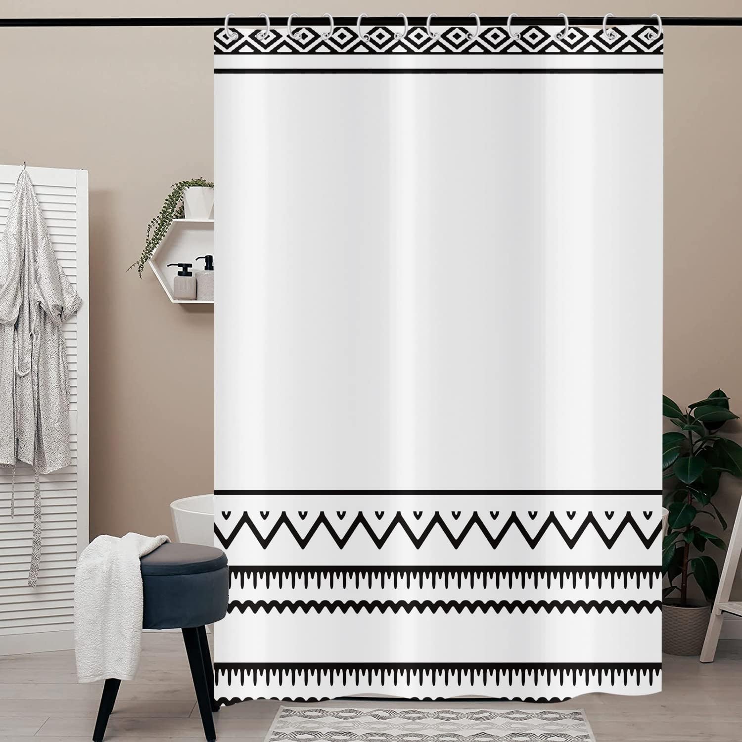 Bring Natur-Flair in dein Badezimmer! Dieser coole Duschvorhang mit Schwarz-Weiß Berglandschafts-Motiv macht jede Dusche zum Erlebnis. Total wasserdicht dank spezieller Polyester-Beschichtung - da bleibt alles trocken! Maße: 91,4 cm breit und 183,9 cm hoch - passt an die meisten Standard-Duschwannen. Mit 12 praktischen C-Ring Haken für einfache Montage. Das Material trocknet super schnell und verblasst nicht - auch nach häufigem Gebrauch nicht. Lässt genug Licht durch für eine angenehme Dusch-Atmosphäre, schützt aber trotzdem deine Privatsphäre. Einfach in der Maschine waschen (Schonprogramm) und bei Bedarf bügeln. Perfekt für alle, die ihr Bad aufpeppen wollen oder einfach mal was Neues brauchen. Sieht aus wie teure Designer-Ware, ist aber absolut erschwinglich. Verwandele dein Badezimmer in eine stylische Oase mit diesem außergewöhnlichen Duschvorhang!