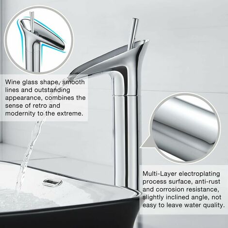 HANSTORE Waschtischarmatur Wasserfall – Einhebel Mischbatterie Verchromt