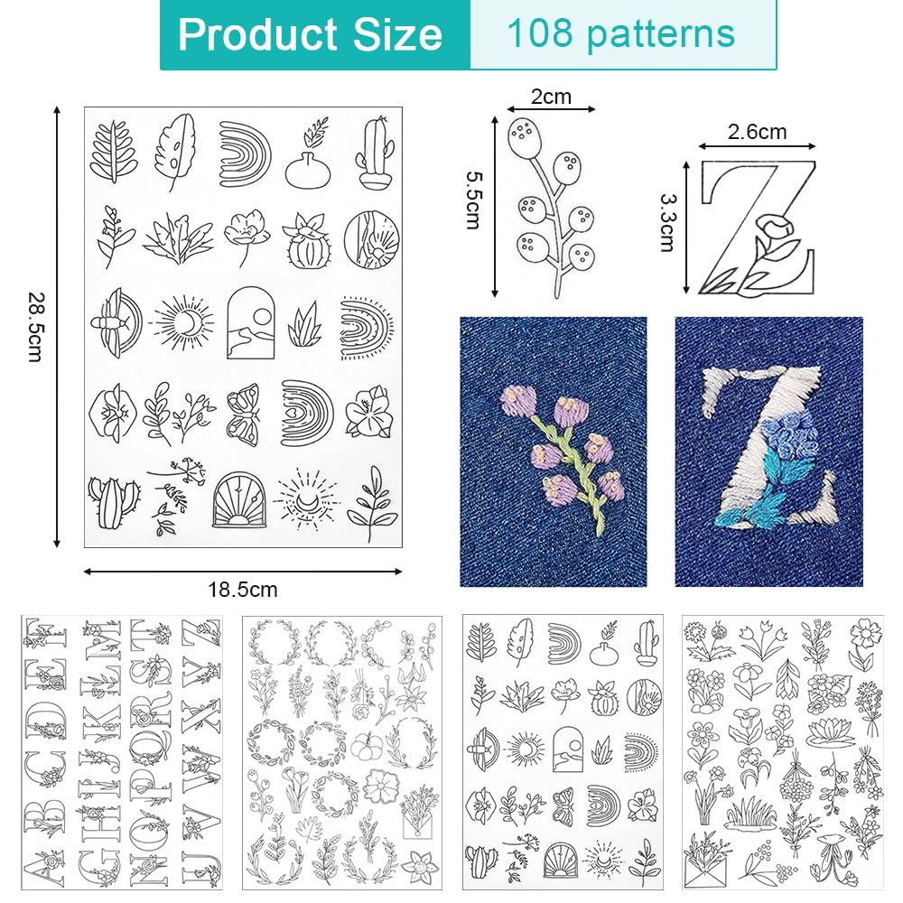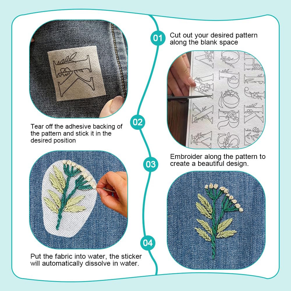 FUGLUS Stickvorlagen Wasserlöslich - 4 Blätter Mit 118 Motiven Für Stickerei