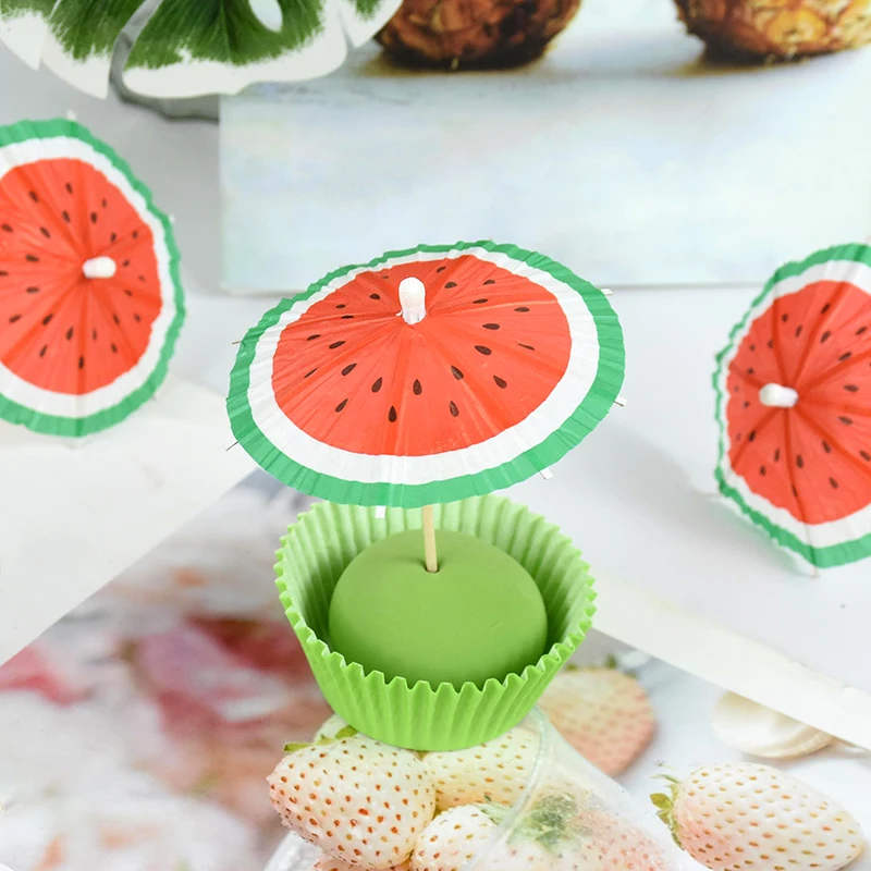 24 bunte Wassermelonen-Cocktailschirme für deine nächste Party! Mit 10cm Durchmesser (39 Zoll) perfekt für Cocktails, Drinks, Cupcakes oder Obstteller. Aus hochwertigem Zellstoff gefertigt - einfach wie einen normalen Schirm öffnen und aufstecken. Bringt sofort Sommer- und Urlaubsfeeling auf deine Feier. Ideal für Hawaii-Partys, Geburtstage, Strandfeste oder einfach für den gemütlichen Abend mit Freunden. Die bunten Farben machen jede Party gleich viel fröhlicher. Einfach in der Handhabung und wiederverwendbar. Aber Achtung: Aus Papier - also bitte von Feuer fernhalten. Mach deine Drinks zum echten Hingucker!