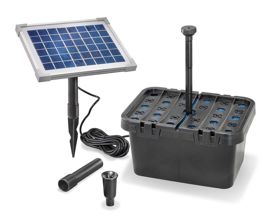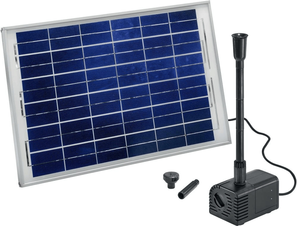 Das komplette Solar-Set enthält: Wasserspeier, 10Wp Solarmodul mit Erdspieß und Tauchpumpe. Die Pumpe schafft bis zu 610 Liter pro Stunde bei 1,5m Förderhöhe. Einfach in der Sonne aufstellen und schon plätschert's! Keine Stromkosten, umweltfreundlich und wartungsarm.