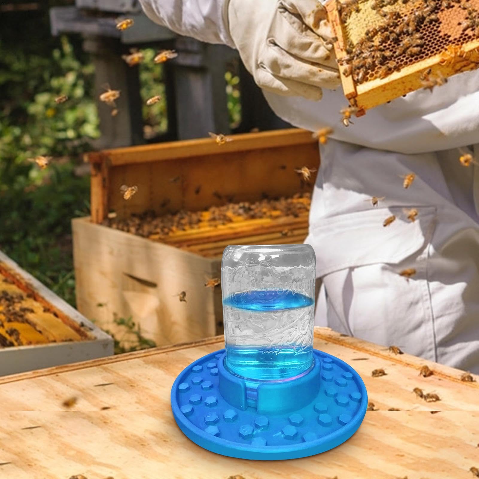 Perfekte Trinkstation für deine Bienen! Dieser blaue Silikon-Spender passt auf normale und weite Einmachgläser. Das sechseckige Rillen-Design (wie Waben!) verhindert Überlaufen - die Bienen bleiben trocken und gesund. Aus lebensmittelechtem Silikon, ungiftig und ewig haltbar. Die knallige Farbe lockt Bienen magisch an. Einfach am Stockeingang platzieren - minimale Störung, maximale Wirkung. Für Anfänger und Profi-Imker gleichermaßen geeignet. Happy bees = more honey!