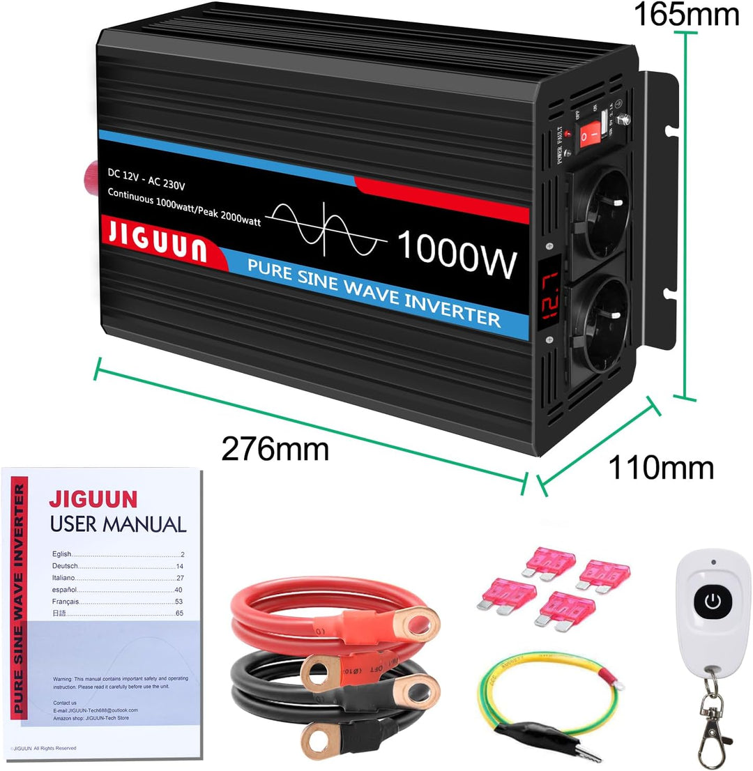 JIGUUN 1000W Reiner Sinus Wechselrichter - Mit Ladegerät & USV Für Wohnmobil & Boot