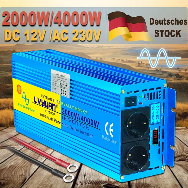 Volle Power für unterwegs! Dieser 1000W Wechselrichter mit reinem Sinus wandelt 12V Batteriestrom in 230V Haushaltsstrom um - sauber und sicher für alle empfindlichen Geräte. Mit 2000W Spitzenleistung meistert er auch anspruchsvolle Verbraucher. Das besondere Feature: Integriertes 30A Ladegerät mit 6-Stufen-Ladung und USV-Funktion! Bei Stromausfall übernimmt er in weniger als 20ms - keine Unterbrechung mehr beim Arbeiten oder Zocken. Mit kabelloser Fernbedienung und LCD-Display behältst du immer den Überblick. Zwei EU-Steckdosen und USB-Anschluss bieten reichlich Anschlussmöglichkeiten. Perfekt für Wohnmobile, Boote, Baustellen oder als Notstromaggregat zu Hause. Mehrfach geschützt gegen Überlastung, Überhitzung und Spannungsschwankungen. Profi-Qualität für echte Freiheit!
