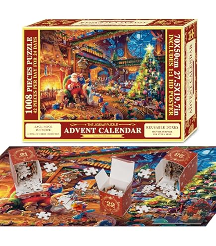 Weeupolfun Adventskalender Puzzle 1008 Teile - Weihnachtspuzzle 24 Tage Countdown