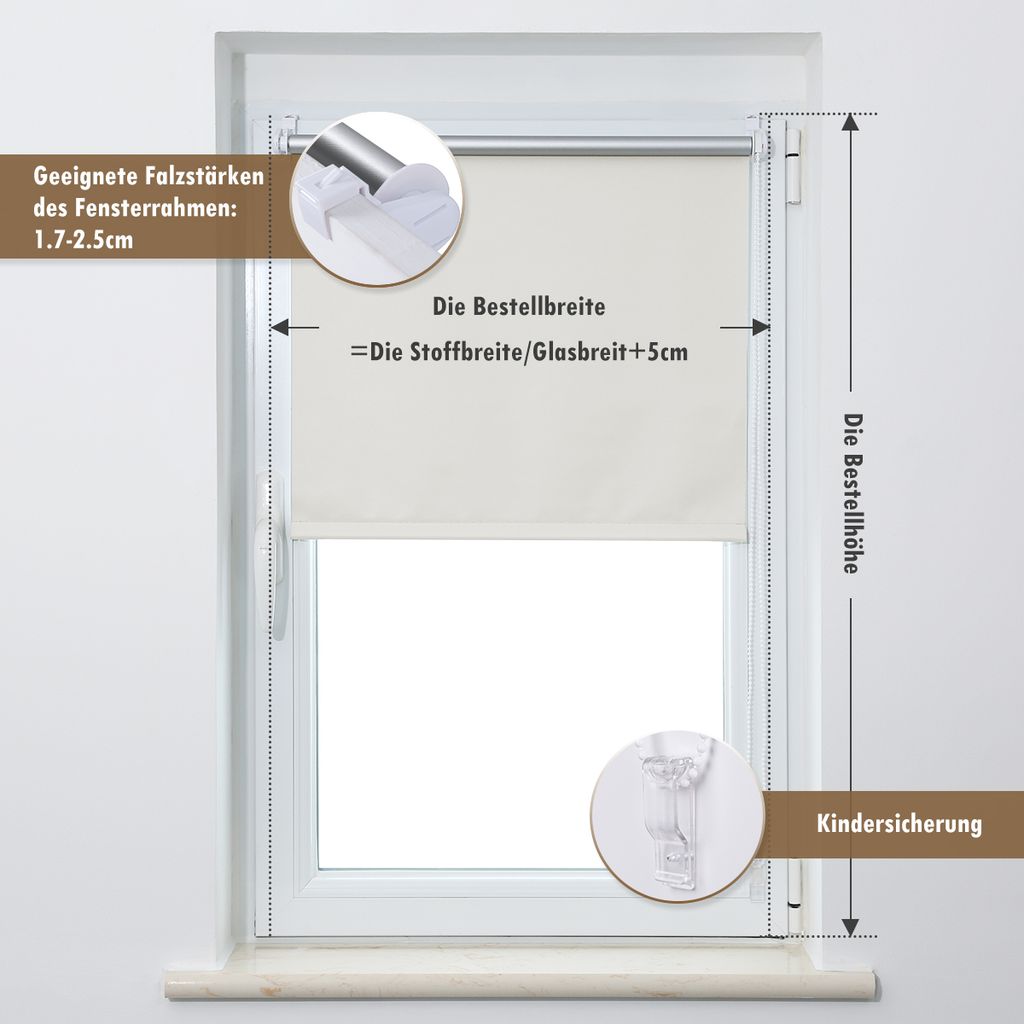 Laneetal Verdunklungsrollo Weiß - 100x210 Cm Klemmfix Ohne Bohren - Thermorollo Mit Sichtschutz