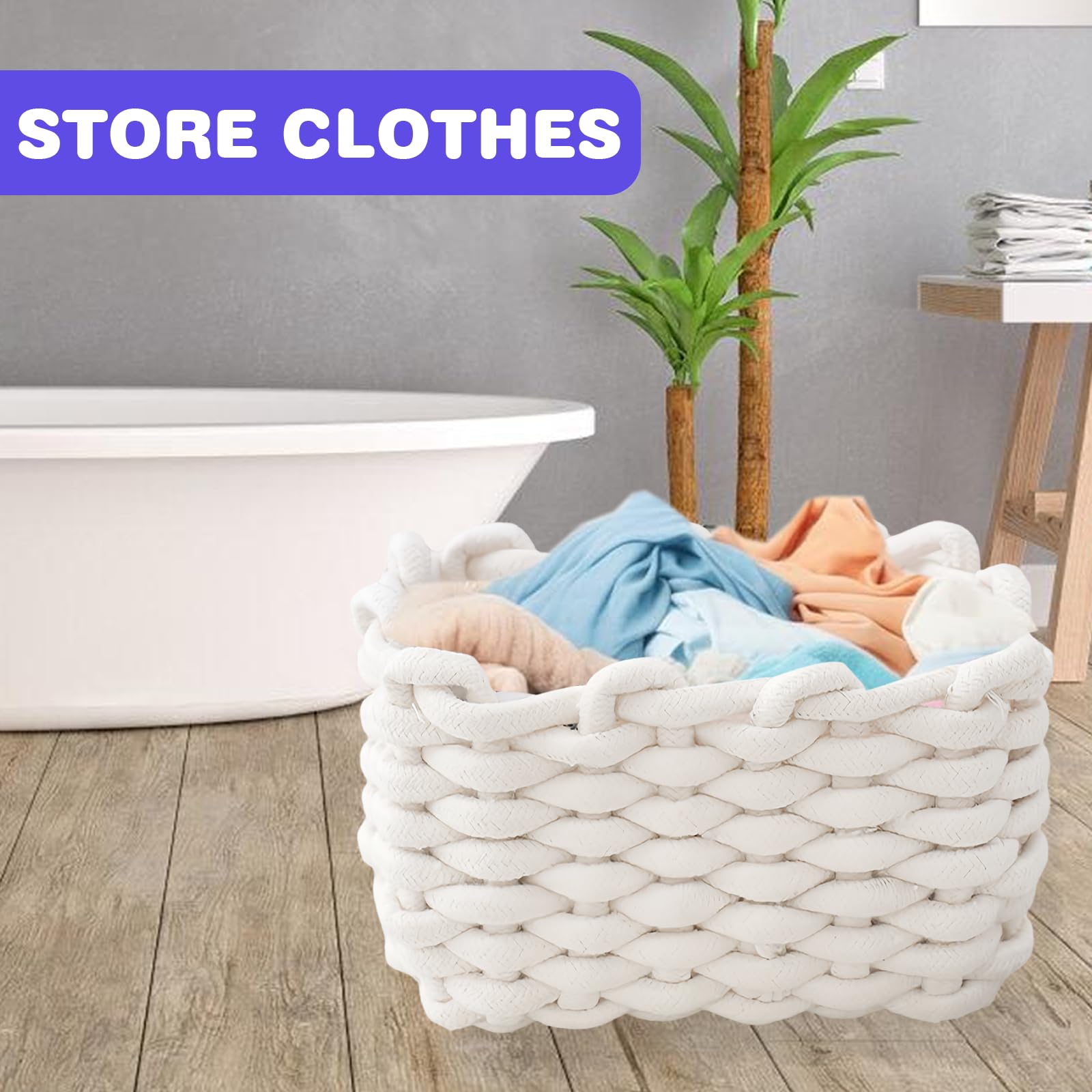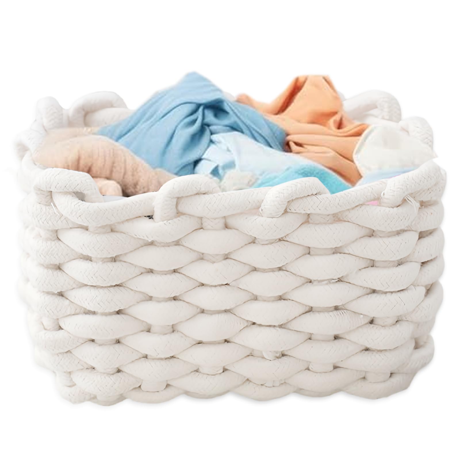 LEKEFETO Aufbewahrungskorb Baumwolle 20x15x12cm - Weiß Geflochten Für Regal Ordnung
