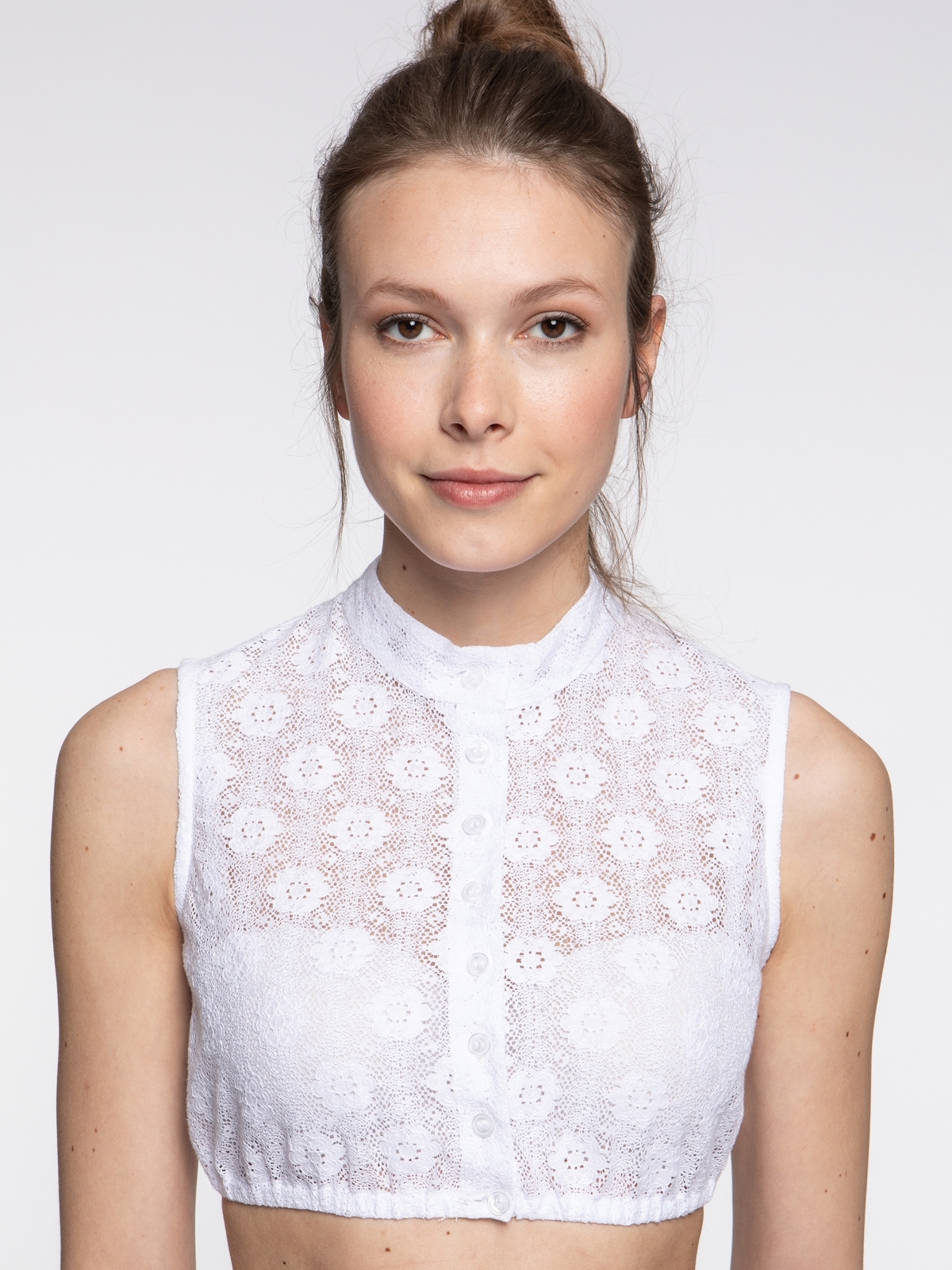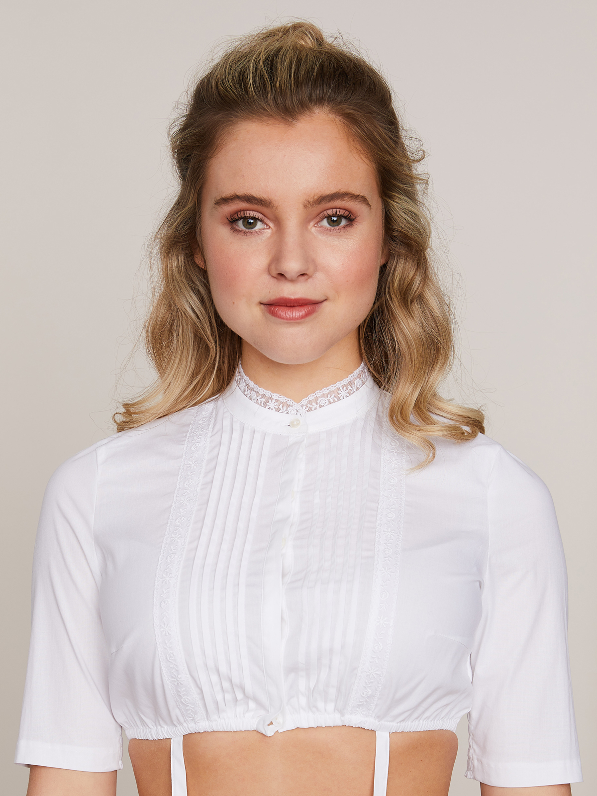 Dirndl Bluse Damen Weiß - Hochgeschlossen Mit Spitze & Flügelärmeln