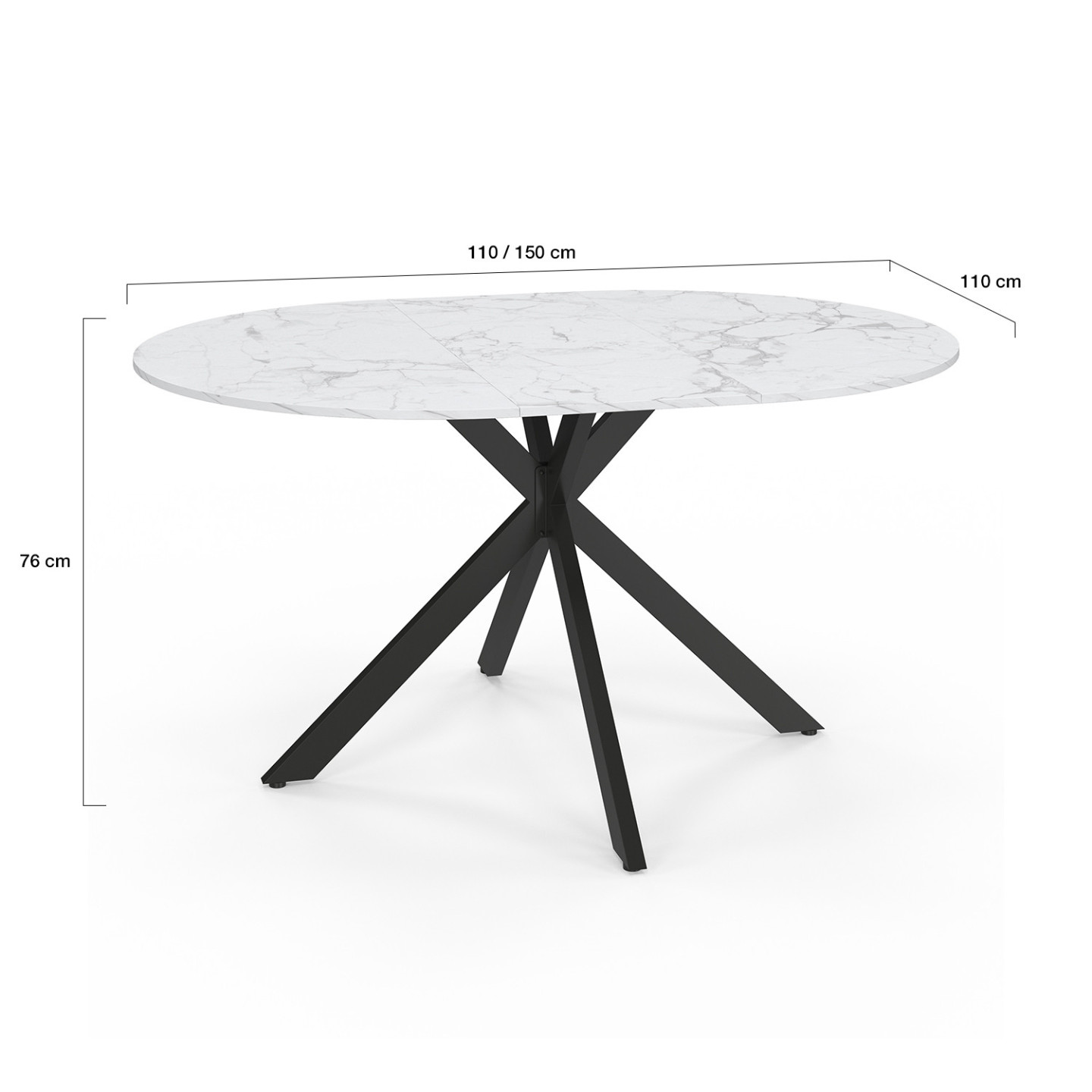 Aus stabilem MDF und Metall gefertigt - robust und langlebig. Mit 75cm Höhe standardmäßig für gemütliches Sitzen. Die runde Form erleichtert die Bewegung im Raum und schafft eine gemütliche Atmosphäre.