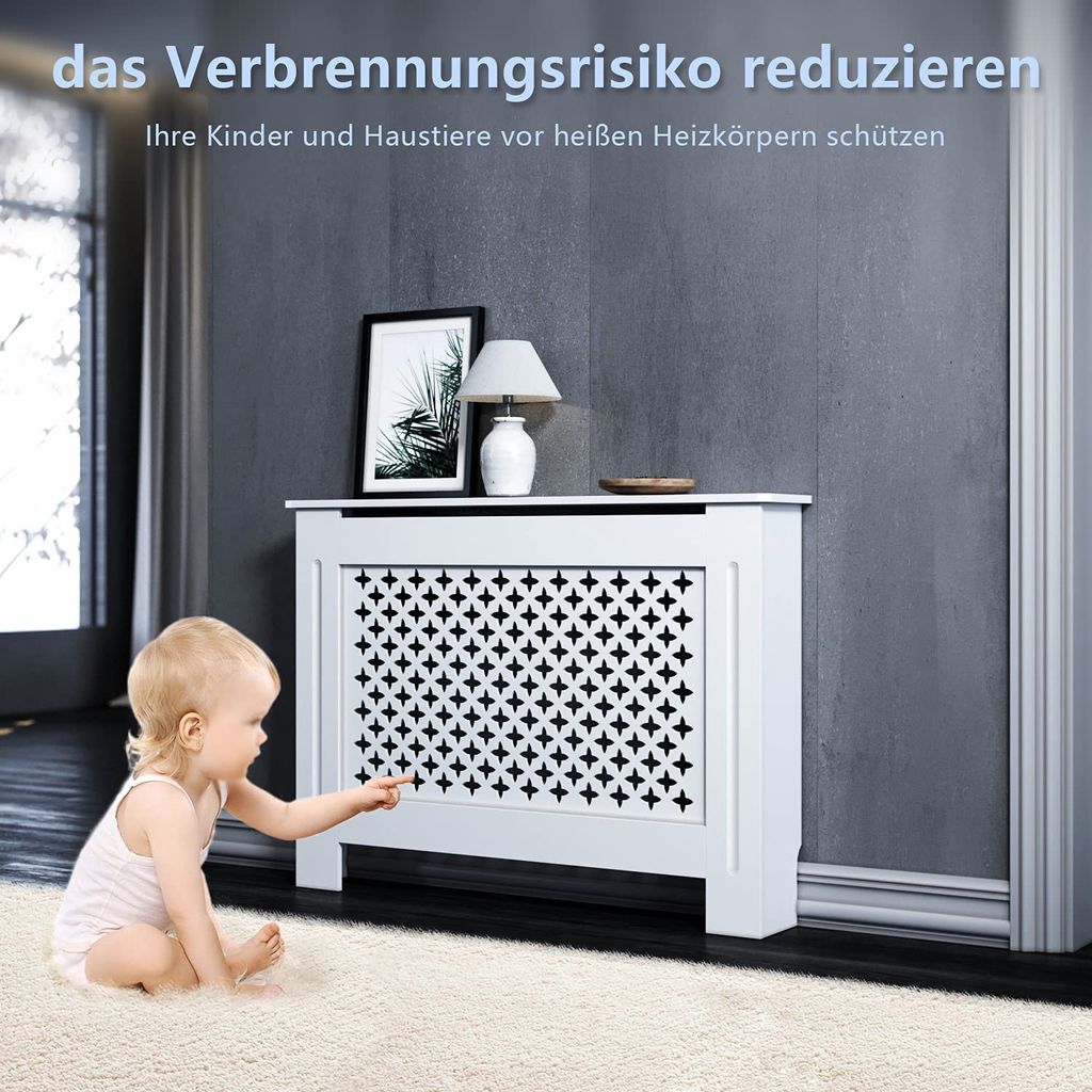 SONNI Heizkörperverkleidung Weiß - Moderne Abdeckung Mit Rauten-Design