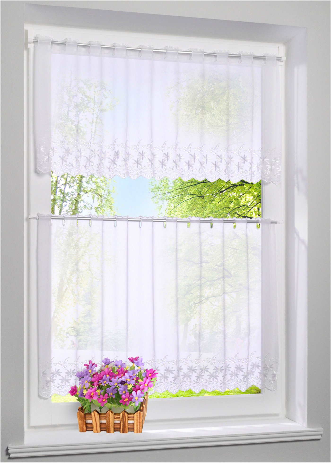 Wunderschöne transparente Raffrollo von BAILEY JO! Dieser elegante Voile-Vorhang verbreitet angenehm diffuses Licht und schafft eine gemütliche Atmosphäre. Perfekt für Wohnzimmer, Küche oder Balkon. \\n\\nMit praktischem Tunnelzug-System einfach zu bedienen - die Höhe lässt sich stufenlos einstellen. Aus 100% Polyester, maschinenwaschbar und mit dekorativer Stickerei. \\n\\n• Maße: 100x140 cm \\n• Material: 100% Polyester \\n• Farbe: Weiß \\n• Transparent \\n• Maschinenwaschbar \\n• Mit Stickerei \\n\\nElegante Lösung für mehr Privatsphäre bei hellem, freundlichem Raumklima!