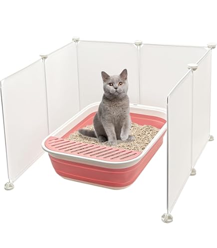 Schluss mit Streu auf dem Boden! Diese drei weißen Spritzschutz-Schilde für deine Katzentoilette sorgen dafür, dass alles drin bleibt, wo es hingehört. Einfach um die Toilette herumstecken – schon ist die Barriere fertig. Aus stabilem PP-Kunststoff, super einfach abzuwischen und hygienisch. Maße: 36 x 36 x 36 cm, also auch für größere Katzenklos geeignet. Die Schilde sind untereinander austauschbar, falls mal was kaputtgehen sollte. Mit dem modernen, dezenten Design sieht das Ganze auch noch gut aus – kein klobiger Klokasten mehr! Perfekt, um deine Wohnung sauber zu halten und deiner Katze trotzdem genug Platz zu bieten. Einfach aufstellen, deine Katze gewöhnt sich schnell dran.