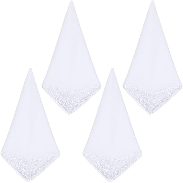 Einfach zauberhaft! Diese 4 weißen Taschentücher mit Spitzendekoration sind perfekt für besondere Anlässe! Aus reiner Baumwolle gefertigt, sind sie super weich und hautfreundlich.