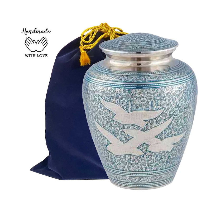 Diese Keramikurne in zartem Weiß mit einer schönen Lilie ist wirklich etwas Besonderes. Mit 29cm Höhe und 20cm Durchmesser bietet sie Platz für 3,9 Liter - also für einen Erwachsenen geeignet. Hochglanz finish und handgefertigt, sieht sie bei Kerzenlicht besonders schön aus. Wichtig: Nicht für Aschenkapseln geeignet, also vorher mit dem Bestattungsunternehmen sprechen! Im Lieferumfang ist ein schöner Beutel und Kleber zum Verschließen dabei. Eine würdevolle Art, um an liebe Menschen zu erinnern. Stellt sie ins Wohnzimmer oder an einen besonderen Platz - sie passt sich jeder Umgebung an.