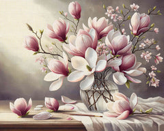 TISHIRON Malen Nach Zahlen Erwachsene - Weiße Magnolien Auf Lila 40x50cm