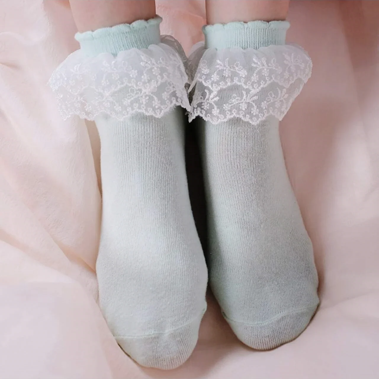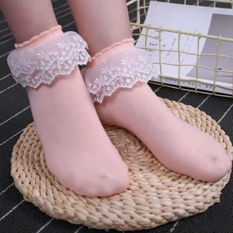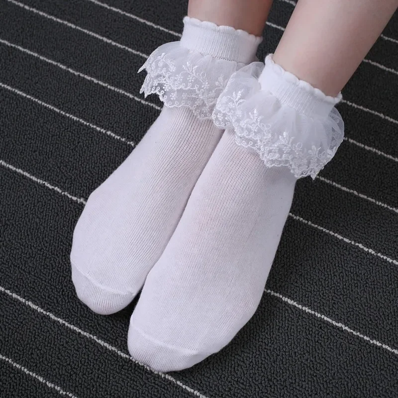 6 Paar Weiße Spitzensocken Damen - Lolita Rüschen Söckchen Mit Netzmuster