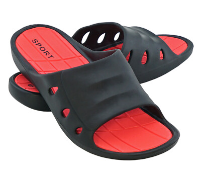 Badelatschen Herren - Weiche PVC Sohle Rutschfest - Strand, Dusche, Pool Sandalen Schwarz Gold 44-45