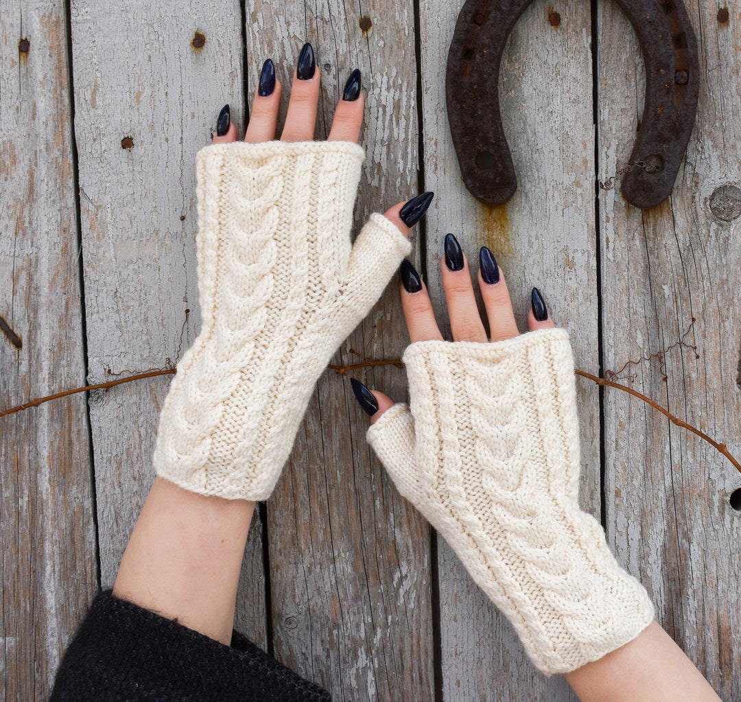 Lange Fingerlose Handschuhe Damen - Weiche Winter-Strickhandschuhe Mit Vintage-Look