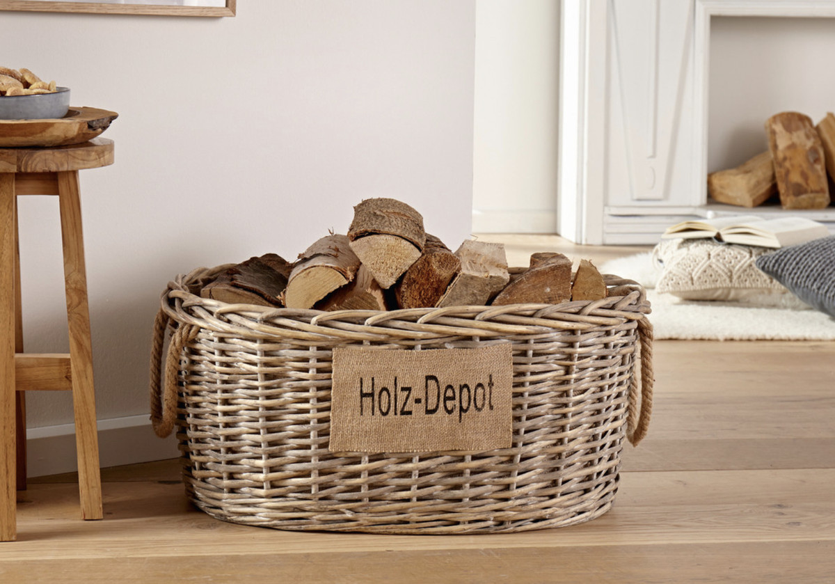 MyBer Kaminholzkorb Aus Weide - Verstärkter Rattankorb Mit Jute-Futter 36x53x30cm