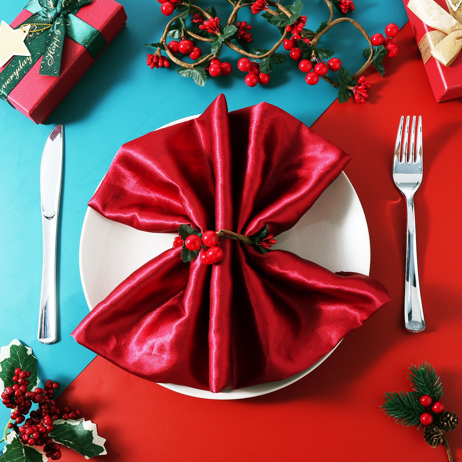 Weihnachten Serviettenringe 16 Stück - Rote Beeren Serviettenhalter Set
