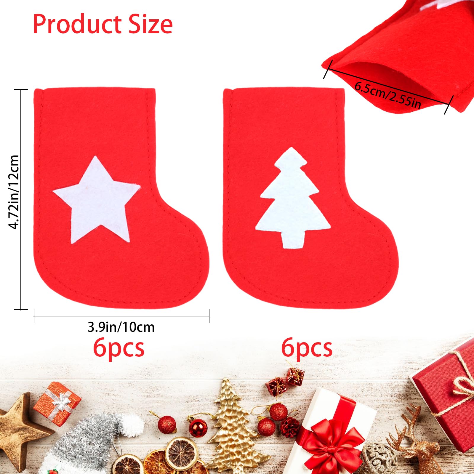 Im Set enthalten sind 6 Baum-Bestecktaschen und 6 Stern-Bestecktaschen - perfekt für deine Weihnachtsfeier mit Familie und Freunden. Einfach Messer, Gabel und Löffel hineinstecken und schon sieht der Tisch ordentlich und festlich aus!
