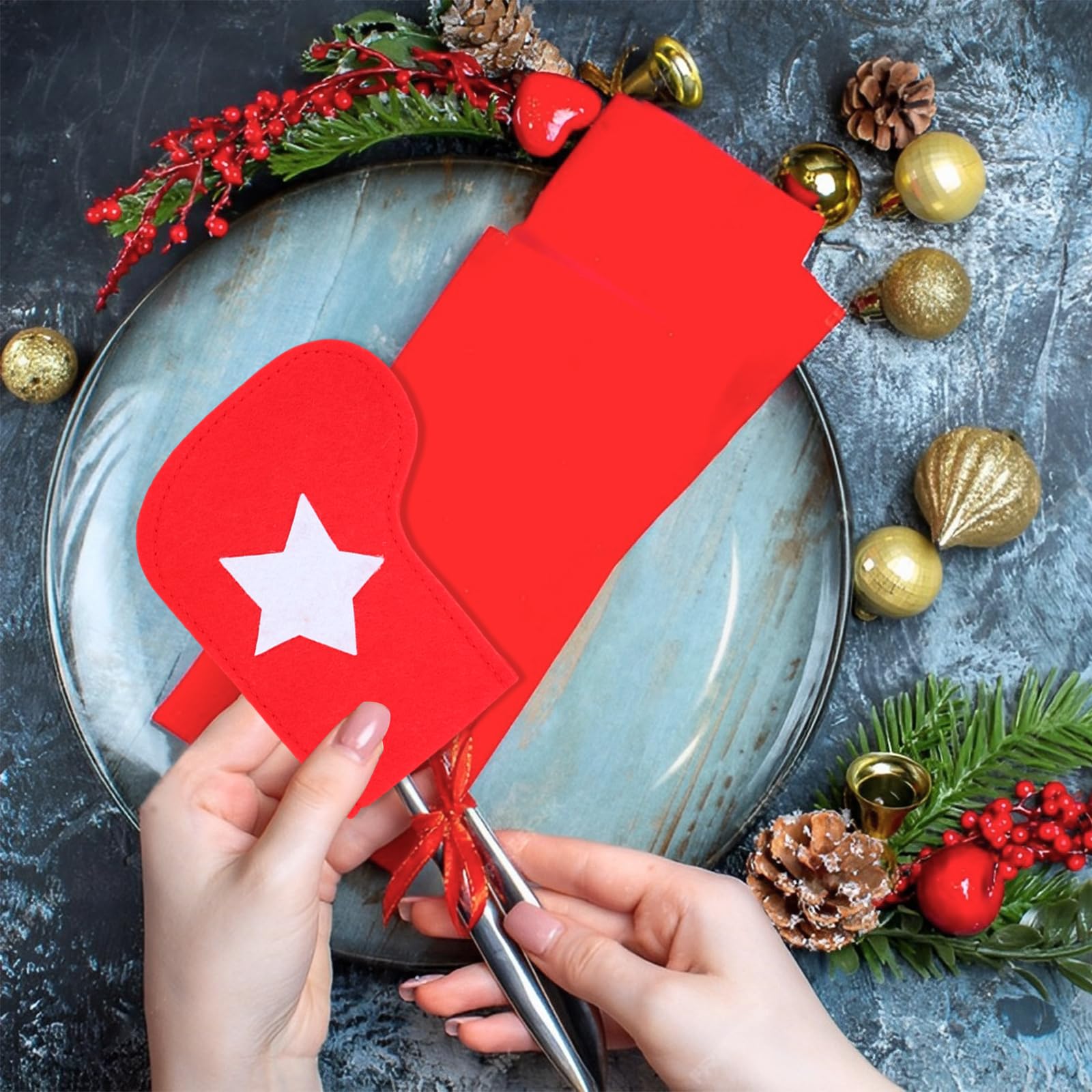 Weihnachts Bestecktasche Set 12-tlg. - Besteckhalter Mit Stern & Baum Motiven Für Festliche Tischdeko