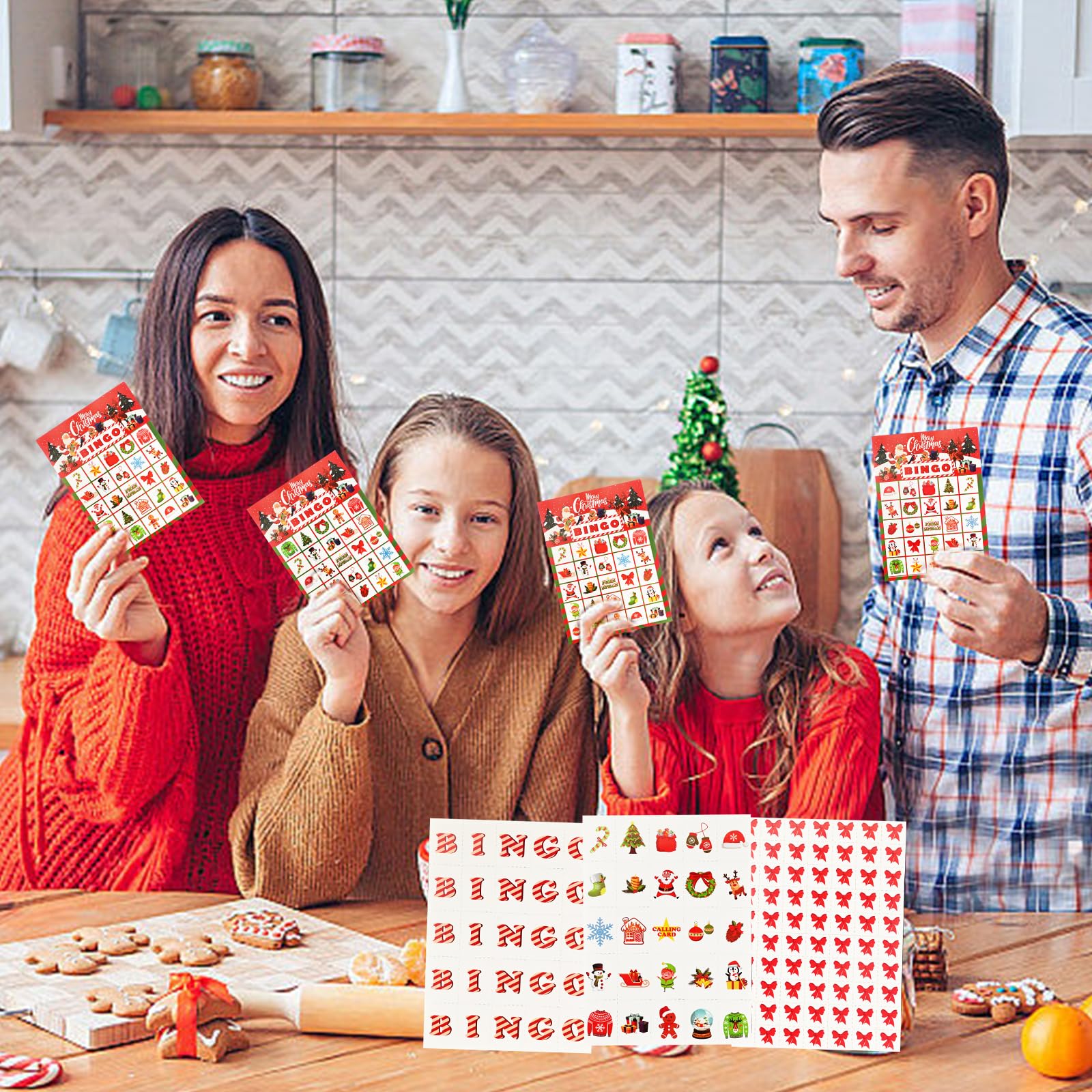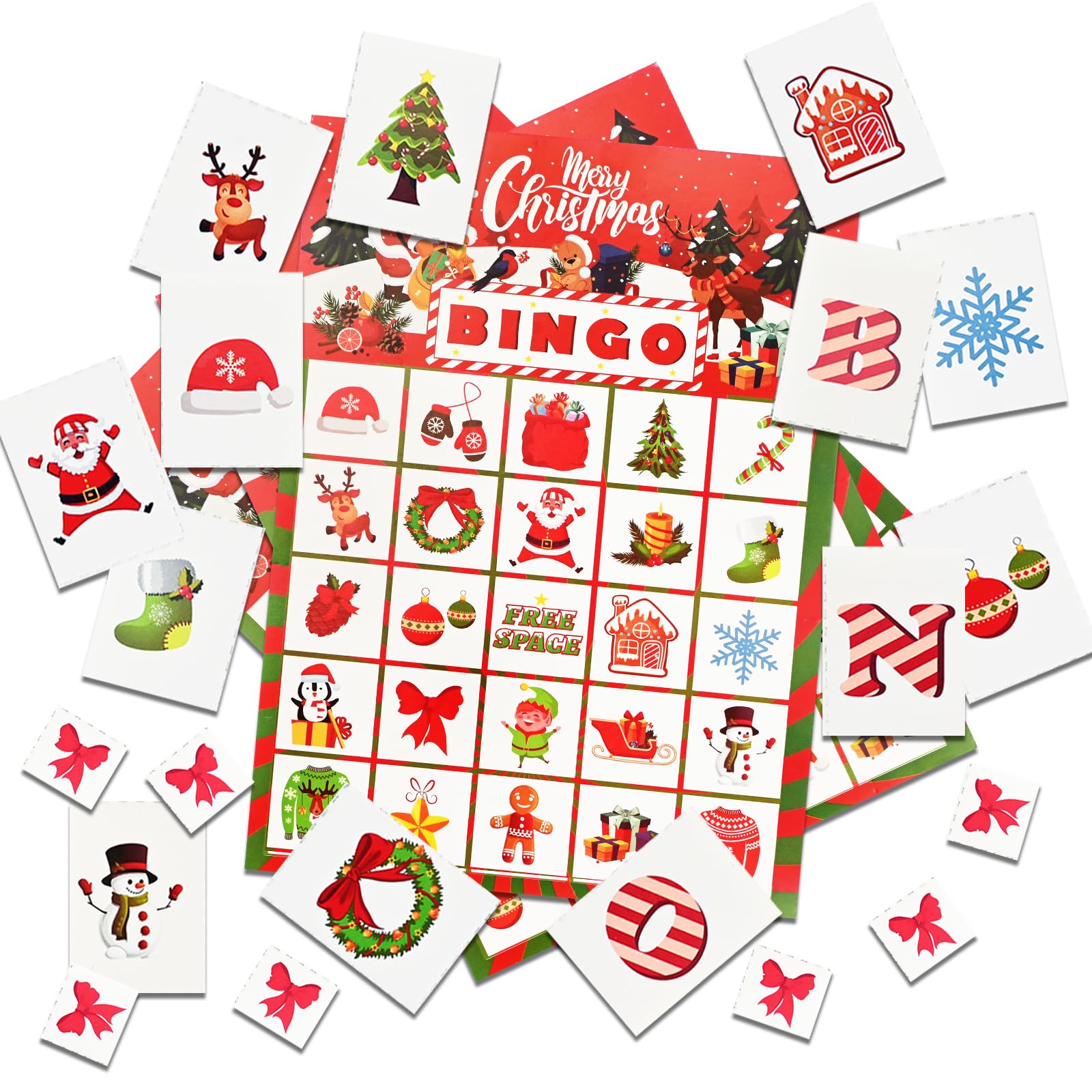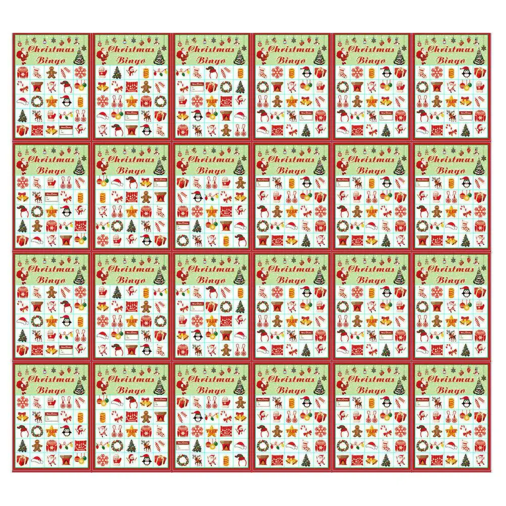Weihnachts Bingo Spiel Für 32 Spieler - 32 Karten Mit Markierungschips Für Familienfeiern
