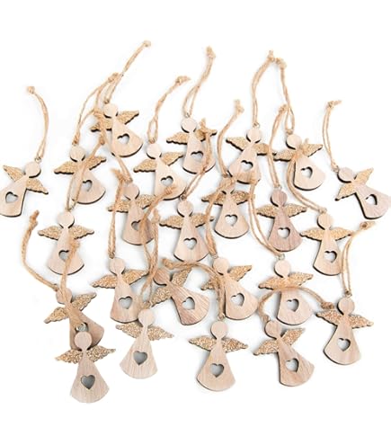 32 Stück Weihnachts Engel Anhänger - Holz Christbaumschmuck Mit 4 Designs