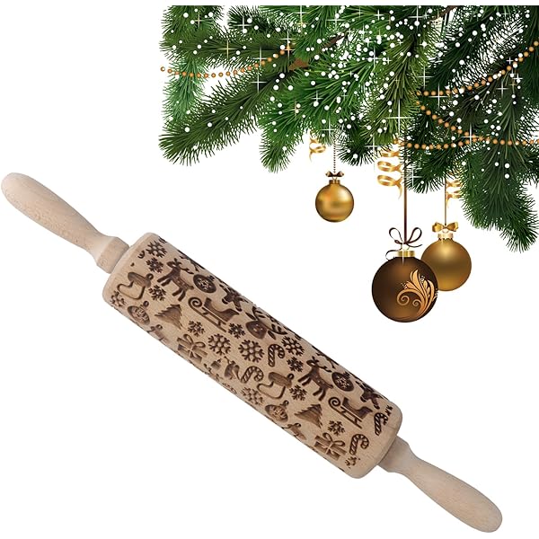 Weihnachts Nudelholz Mit 3D-Muster - 35cm Teigroller Für Plätzchen & Gebäck