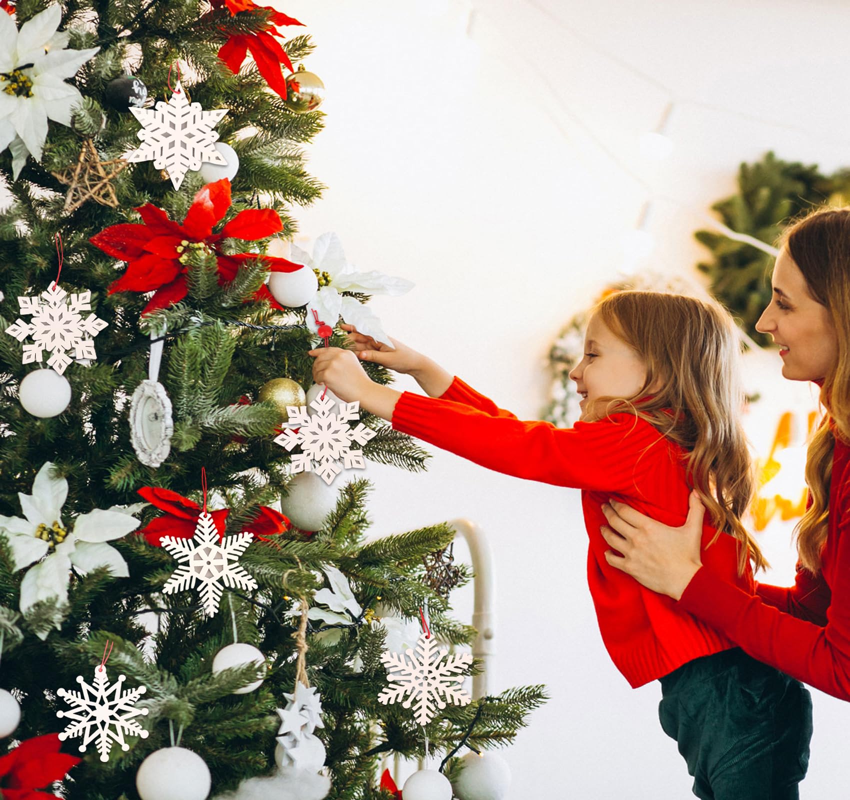 Oh, wie niedlich! Diese Holz-Schneeflocken bringen richtig Weihnachtsstimmung in dein Zuhause. Mit 24 Teilen und 6 verschiedenen Designs kannst du deinen Weihnachtsbaum ganz individuell schmücken. Jede Schneeflocke ist etwa 8x7 cm groß - also perfekt sichtbar, aber nicht zu aufdringlich.