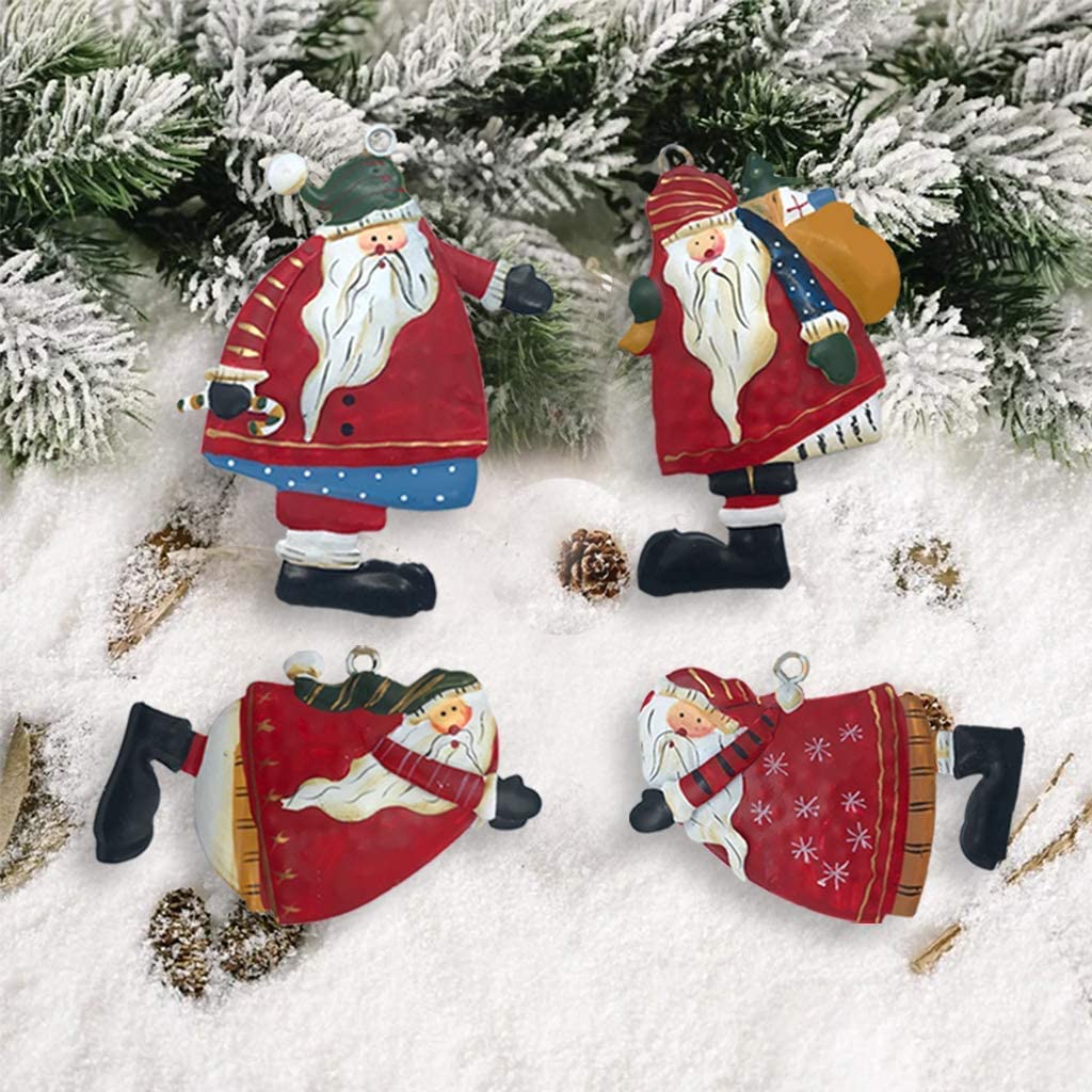 7-teiliges Weihnachtsbaum-Dekoset - Vintage Schneemann & Weihnachtsmann Anhänger Aus Eisen