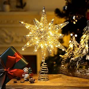 Lewondr Weihnachtsbaum Spitze 30cm - LED Stern Mit Timer & Fernbedienung Silber