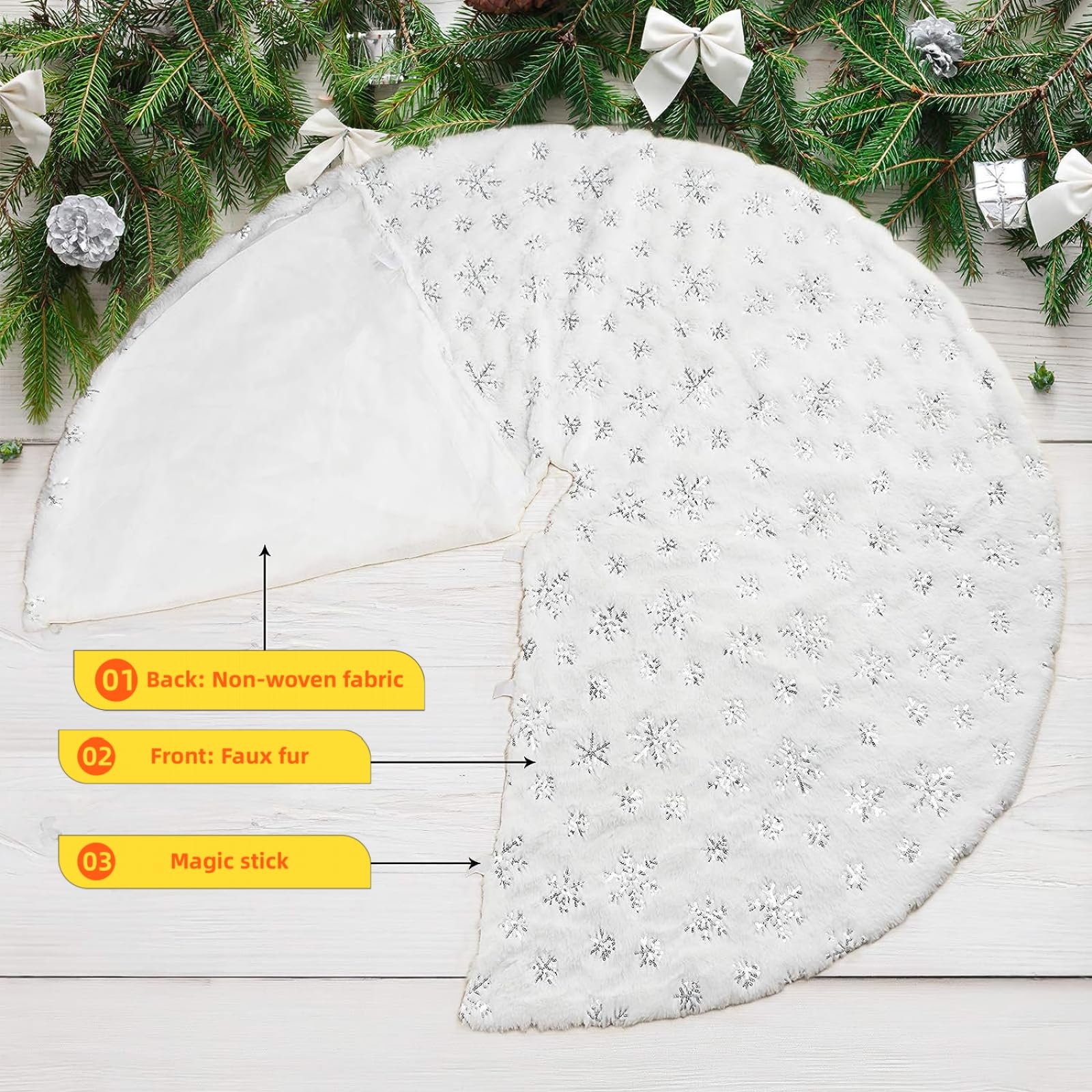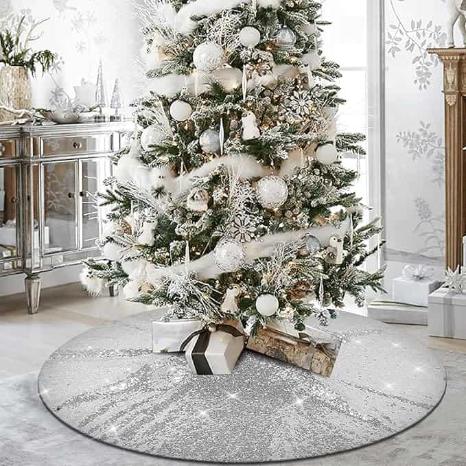 90cm Weihnachtsbaumdecke Weiß Mit Silber - Flauschiger Baumrock Für Weihnachtsdekoration