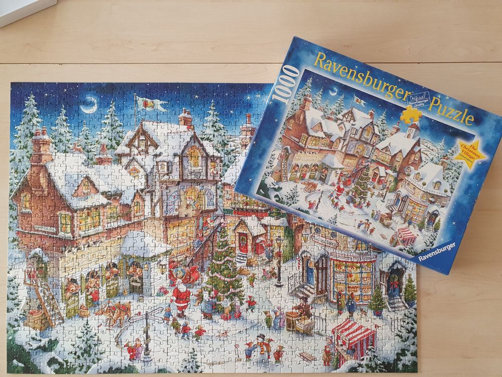 Oh, wie gemütlich! Dieses Ravensburger Puzzle \Das Weihnachtshaus\ bringt weihnachtliche Stimmung ins Wohnzimmer. Mit 500 Teilen perfekt für gemütliche Winterabende - nicht zu einfach, nicht zu schwer.\n\nDas fertige Bild misst 49x36 cm - ein schöner Hingucker! Ab 12 Jahren geeignet, aber auch für Erwachsene ein toller Zeitvertreib. Die berühmte Ravensburger Softclick Technology sorgt für perfekte Passgenauigkeit - jedes Teil fügt sich satisfaktionsgarantiert ein.\n\nHergestellt mit Uhrmacherpräzision - die Teile sind vielfältig geformt und passen perfekt. Premium-Qualität, die man spürt! Perfekt für Puzzle-Anfänger und Gelegenheits-Puzzler.\n\nOb alleine oder mit der Familie - dieses weihnachtliche Motiv macht einfach Spaß! Einfach auspacken, Teile sortieren und lospuzzeln. Die perfekte Beschäftigung für besinnliche Adventsabende. Weihnachten kann kommen!