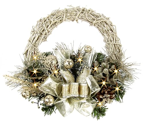 COM-FOUR Weihnachtskranz Mit LEDs - Beschneiter Türkranz Mit Timer
