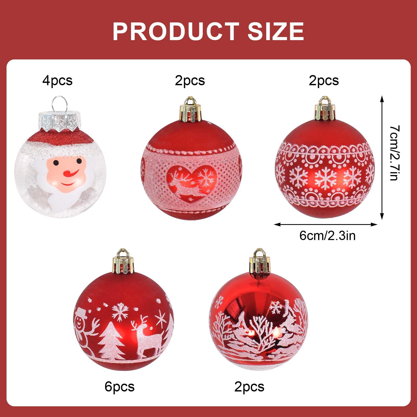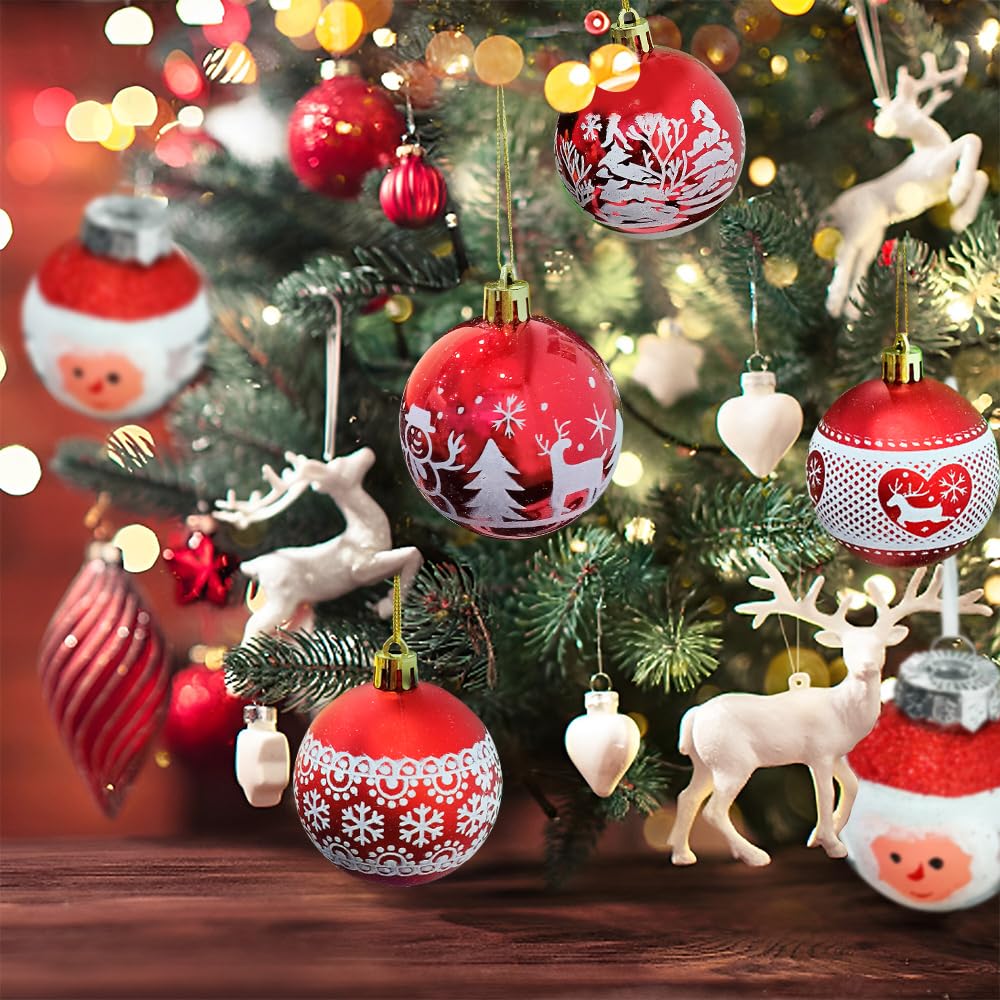 Weihnachtskugeln Set 16-teilig - 6cm Plastik Kugeln Mit 7 Designs Für Christbaum