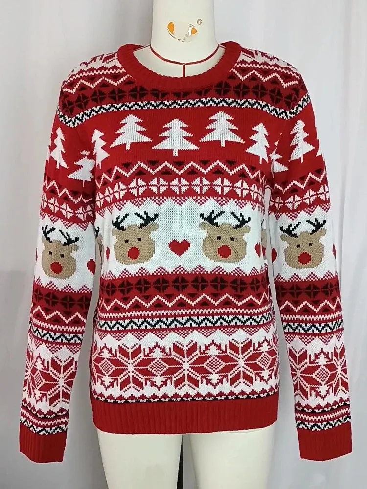 Boah, dieser Weihnachtspullover ist ja mal der absolute Hit für die Festtage! In knalligem Rot mit süßen Rentieren, Schneemännern und Weihnachtsbäumen - da kommt sofort Festtagsstimmung auf! Aus weichem Sweatshirt-Material - super bequem und kuschelig! Mit Rundhals-Ausschnitt und langen Ärmeln - perfekt für kalte Wintertage! Der lockere Schnitt sitzt lässig und verzeiht so einiges - ideal nach dem Weihnachtsessen! Einfach zu kombinieren mit Jeans, Leggings oder Rock - immer trendig unterwegs! Ob auf der Weihnachtsfeier, beim Familienfest oder einfach nur gemütlich auf dem Sofa - damit bist du der Star! Achtung: Bitte vorher die Größentabelle checken! Wenn du's lässiger magst, nimm einfach eine Größe größer! Also wenn du mal richtig in Weihnachtsstimmung kommen willst - hier ist dein Pullover! Einfach anziehen und festlich feiern!