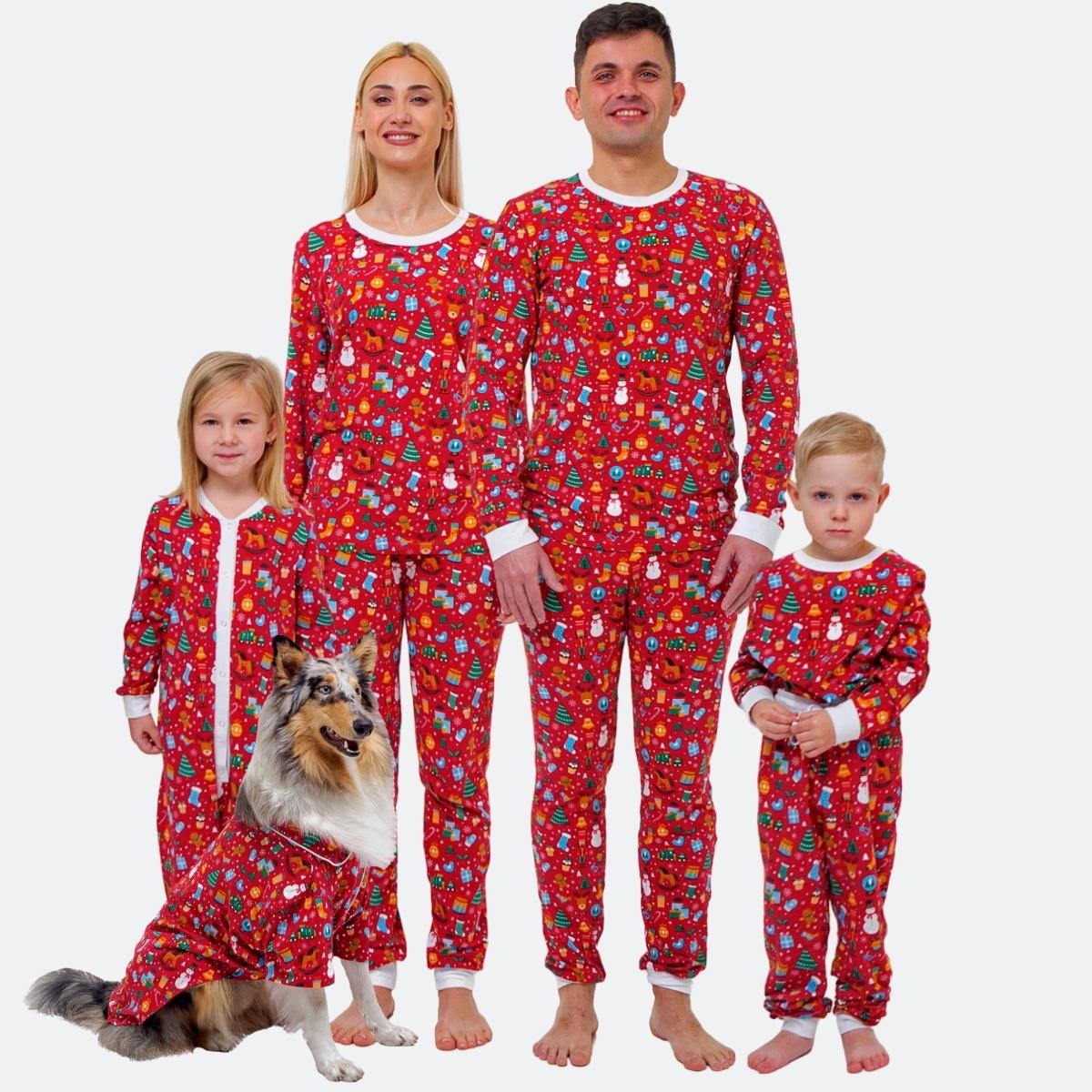 Wie süß sind denn diese Familien-Pyjamas! Perfekt für den Weihnachtsmorgen oder gemütliche Filmabende. Mit rosa-weißen Karo-Hosen und verschiedenen Weihnachtsmotiven zur Auswahl: Rentier Rudolph, Weihnachtswichtel oder festliche Bäume. Aus weicher Baumwollmischung, atmungsaktiv und hautfreundlich. Für Mama, Papa, Kinder und sogar Baby-Strampler erhältlich. Einfach in der Maschine waschbar. Das perfekte Geschenk für die Heiligabend-Box! Schafft unvergessliche Familienfotos und wird zur liebsten Weihnachtstradition. Einfach anziehen und Weihnachtsstimmung genießen!