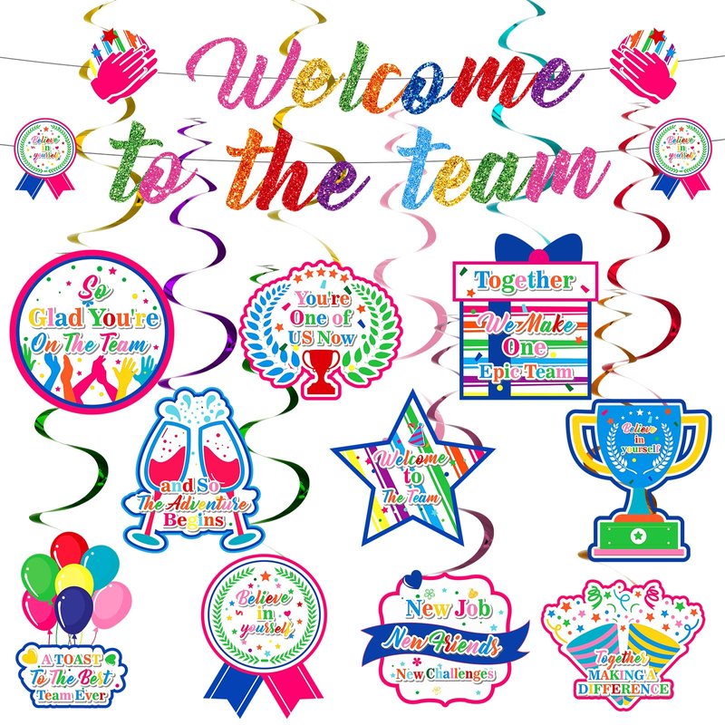 Ein neuer Kollege kommt ins Team? Mach ihn mit diesem coolen Banner richtig willkommen! Das 'Welcome to the Team' Banner in Gold-Glitter sorgt für eine super Stimmung im Büro. Mit 3,3 Fuß (ca. 1 Meter) Länge ist es genau die richtige Größe für Pausenraum, Empfang oder über dem Schreibtisch. Das Beste: Es kommt schon vorgebunden mit 10 Fuß langem Seil - einfach aufhängen und fertig! Der goldene Glitter glänzt schön im Licht und sieht richtig hochwertig aus. Perfekt für den ersten Arbeitstag, Beförderungen oder Teamevents. So fühlt sich jeder Neue sofort willkommen und Teil des Teams. Einfach wieder verwendbar - nach der Feier zusammenrollen und für den nächsten Kollegen aufbewahren. Viel besser als diese langweiligen Standard-Banner! Mach dein Büro zu einem Ort, an dem sich jeder wohlfühlt. Ein kleines Detail, das große Wirkung hat - deine neuen Kollegen werden es lieben!