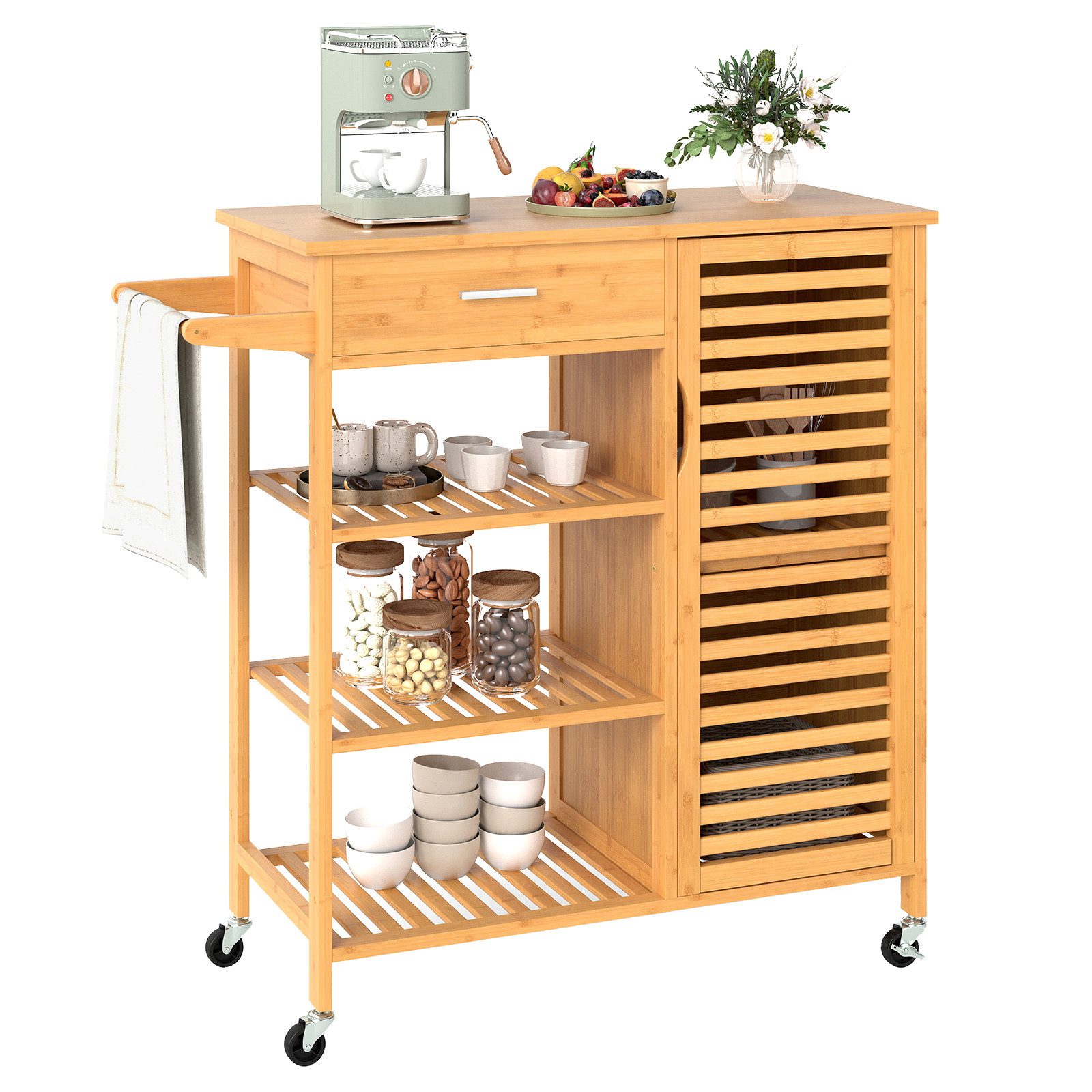 Well Home Bambus Beistellwagen - 3 Ebenen Mit Rädern, Platzsparend