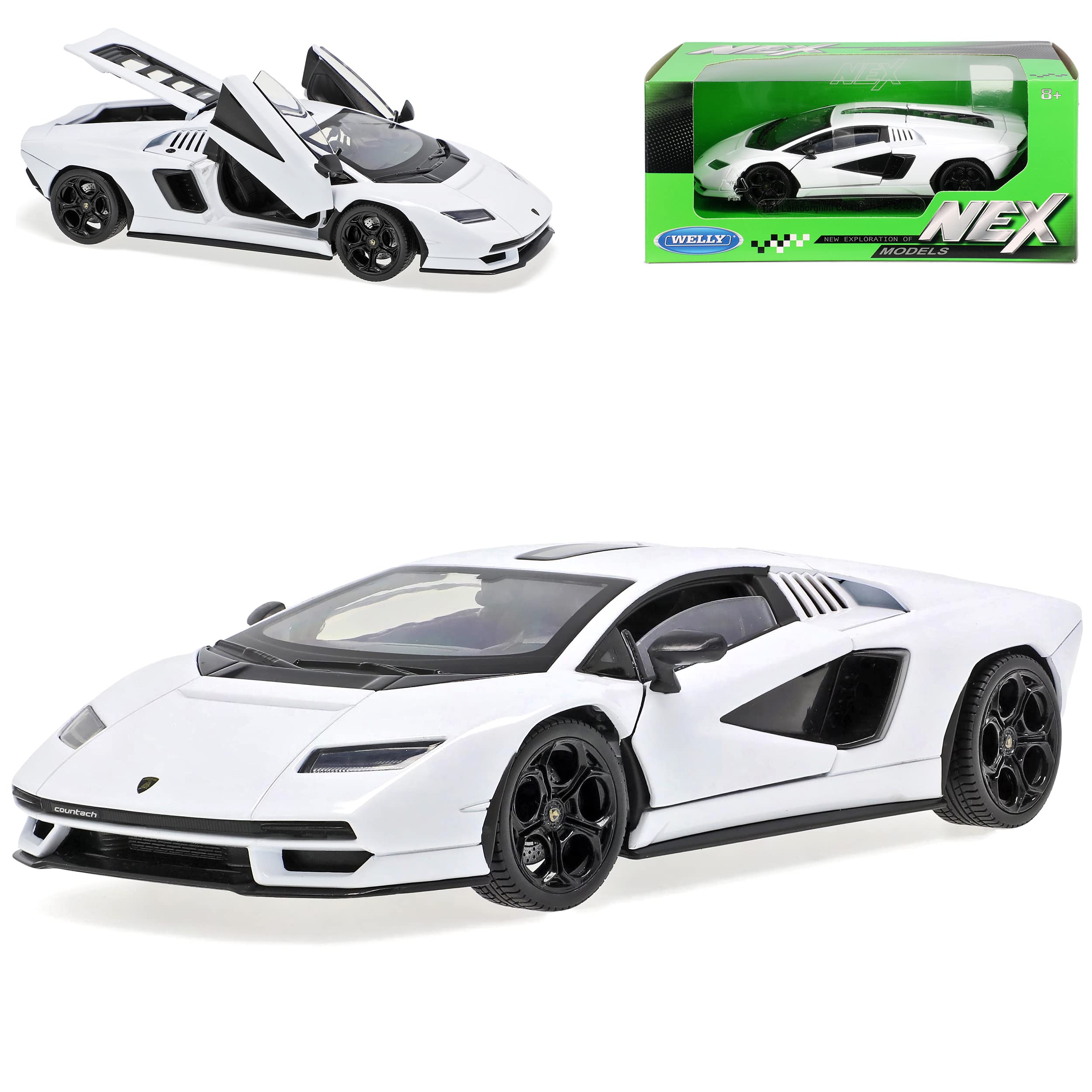 Autofans und Sammler - dieses Welly Lamborghini Countach Modellauto ist ein absoluter Traum! Im Maßstab 1/43 und ca. 11,5cm lang, ist es ein detailgetreuer Nachbau des legendären Sportwagens von 1974-1990. Aus Metall mit Plastikteilen gefertigt, fühlt es sich hochwertig an. Die Türen lassen sich öffnen und die Räder drehen sich - genau wie beim großen Vorbild. In der originalen Welly-Verpackung geliefert, ist es perfekt für die Vitrine oder zum Verschenken. Ob für erwachsene Sammler oder junge Autofans - dieses Modell begeistert jeden. Der schwarze Lack glänzt edel und die Verarbeitung ist erstklassig. Perfekt zum Ausstellen, aber auch zum Spielen geeignet - wenn man vorsichtig ist. Ein echter Hingucker im Regal und ein Muss für jede Modellauto-Sammlung. Erwecke die Legende des Countach in dein Zuhause - dieses Auto war seiner Zeit so weit voraus und ist heute ein begehrtes Sammlerstück. Hol dir ein Stück Automobilgeschichte in perfekter Miniatur-Ausführung - damit macht Sammeln richtig Spaß!