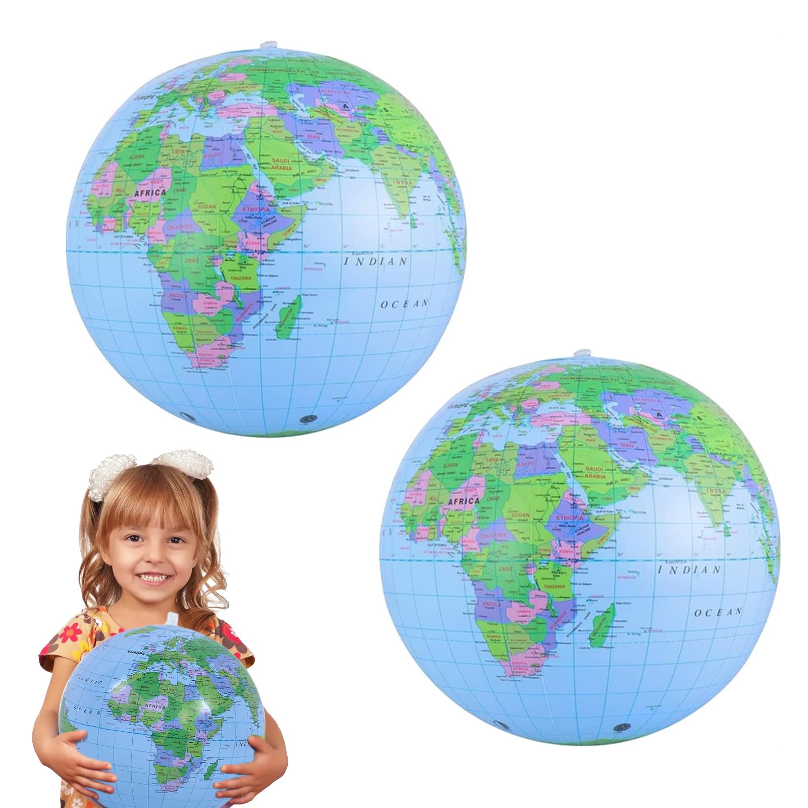 2 Stück Aufblasbare Weltkugel 16 Zoll - Geographie Lernball Für Pool & Garten